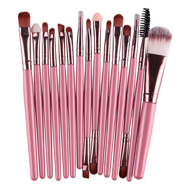 แปรงแต่งหน้า ขนแปรงนุ่ม ด้ามไม้ สำหรับมืออาชีพ 15 ชิ้น