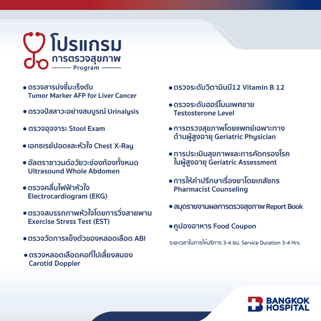ชุดตรวจสุขภาพ Longevity Male Check Up อายุ 60 ปีขึ้นไป (ชาย) - Bangkok Hospital [E-Coupon]