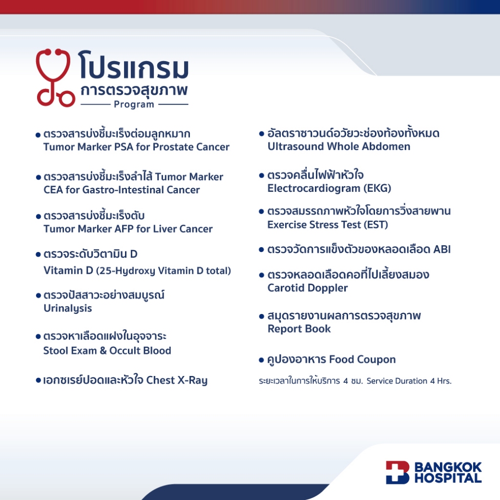 ชุดตรวจสุขภาพ Signature Male Check-up สำหรับอายุ 50 ปีขึ้นไป ชาย - Bangkok Hospital [E-Coupon]
