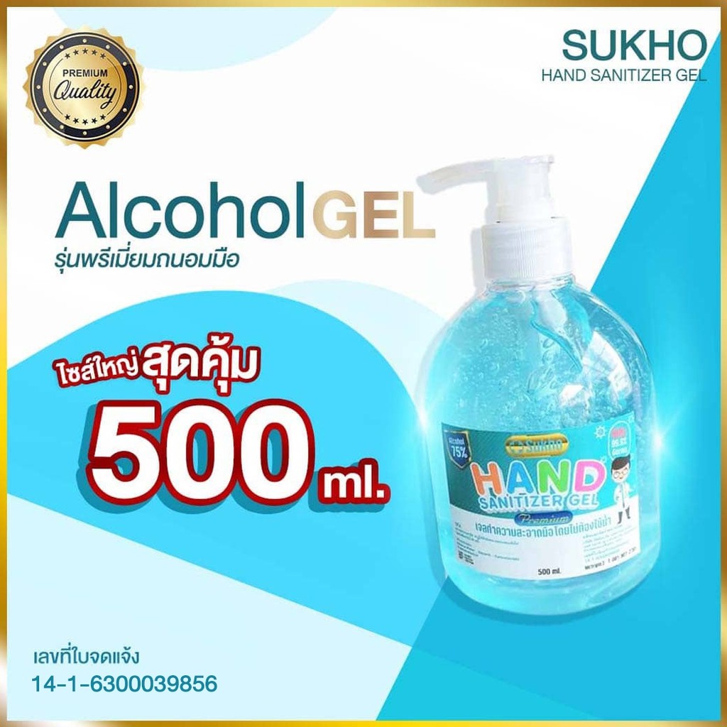 เจลแอลกอฮอล์ รุ่นพรีเมี่ยมเจลนาโนกึ่งน้ำซึมไวมาก ผสมวิตามินอีและอโลเวล่า ถนอมมือ เจลล้างมือขนาด 500 ml.((พร้อมส่ง))