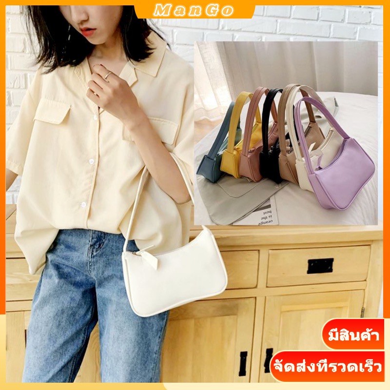 FM066 กระเป๋าสะพายไหล่ กระเป๋าผู้หญิง กระเป๋าแฟชั่น ผ้าหนัง สีพื้น