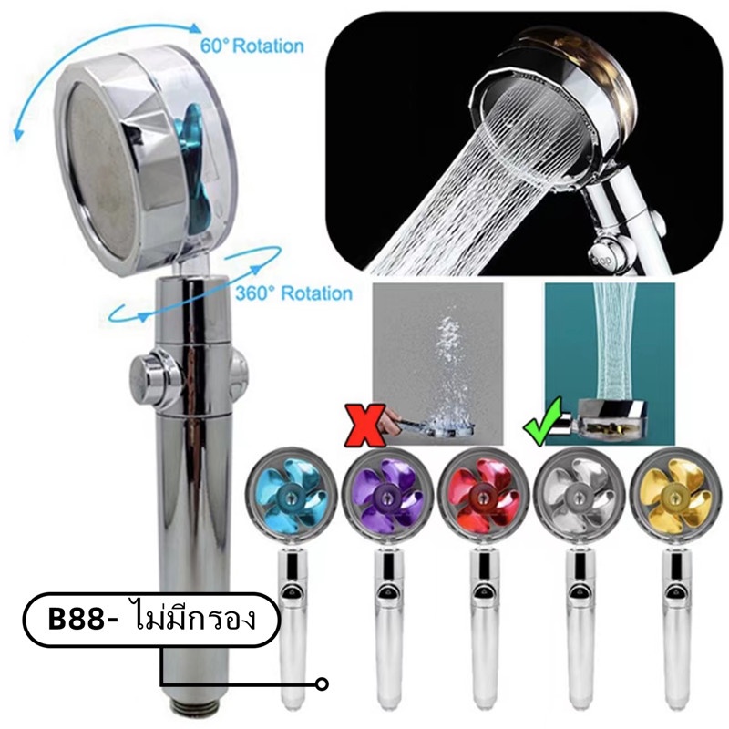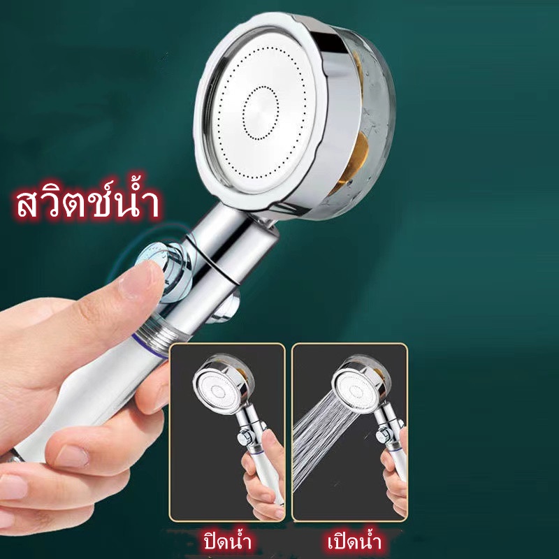 ฝักบัว หัวฝักบัวแรงดันสูง หมุนได้ 360°หยุดน้ำเพียงปุ่มเดียว ฝักบัวแรงดันสูง ฝักบัวกังหันที่ แขวนฝักบัวแบบไม่ต้องเจาะผนัง