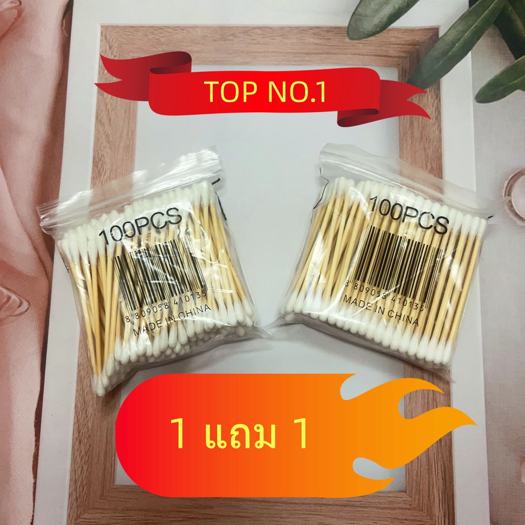 พร้อมส่ง⭐️ซื้อ 1 แถม 1 สำลี คอตตอนบัด100 ก้าน สำลีอนามัย สำลีเช็ดเครื่องสำอางจากใยฝ้ายบริสุทธิ์ 100% เพียว คอตตอนบัด