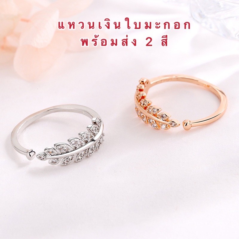 แหวนใบมะกอก [ 010 ] แหวนช่อมะกอก ขนาดฟรีไซร์ พร้อมส่ง 2 สีค่ะ