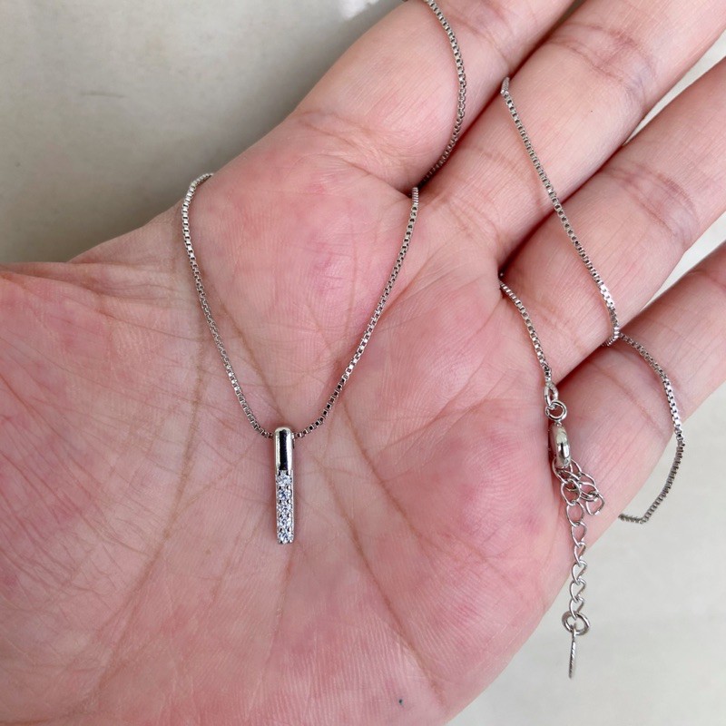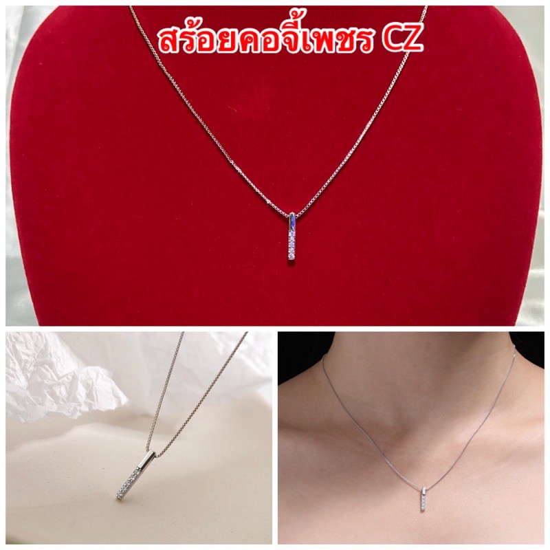สร้อยจี้เพชร cz [ 080 ] สร้อยเงิน สร้อยคอพร้อมจี้ แบบสวย ทันสมัย ความยาว 18 นิ้ว พร้อมส่ง