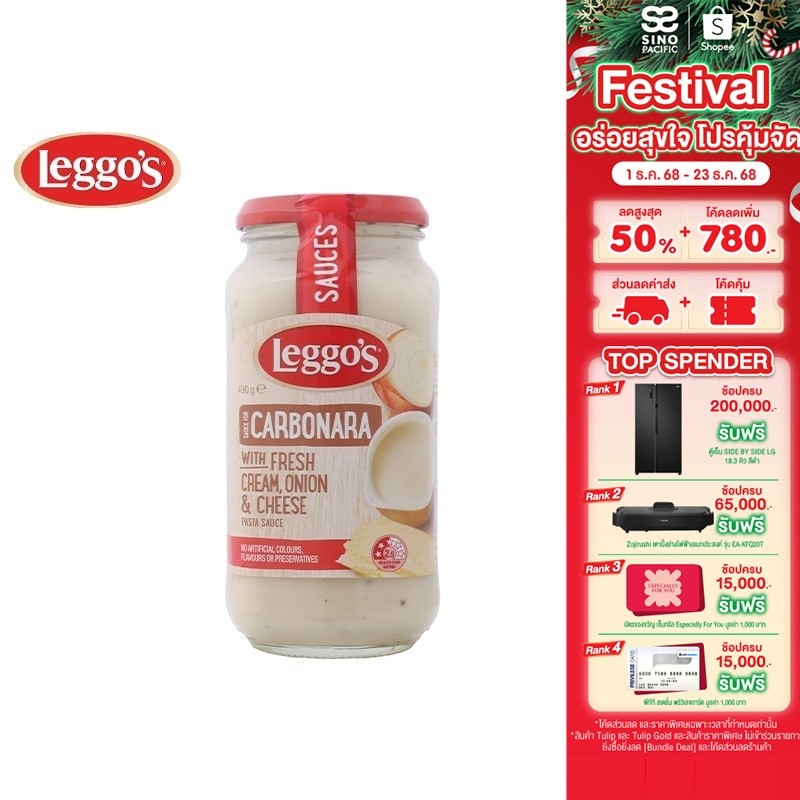Leggo's Carbonara with Cream Onion&Cheese เลกโกส์ คาร์โบนาร่า ซอสสปาเก็ตคาร์โบนาร่า พร้อมทาน 490 ก.