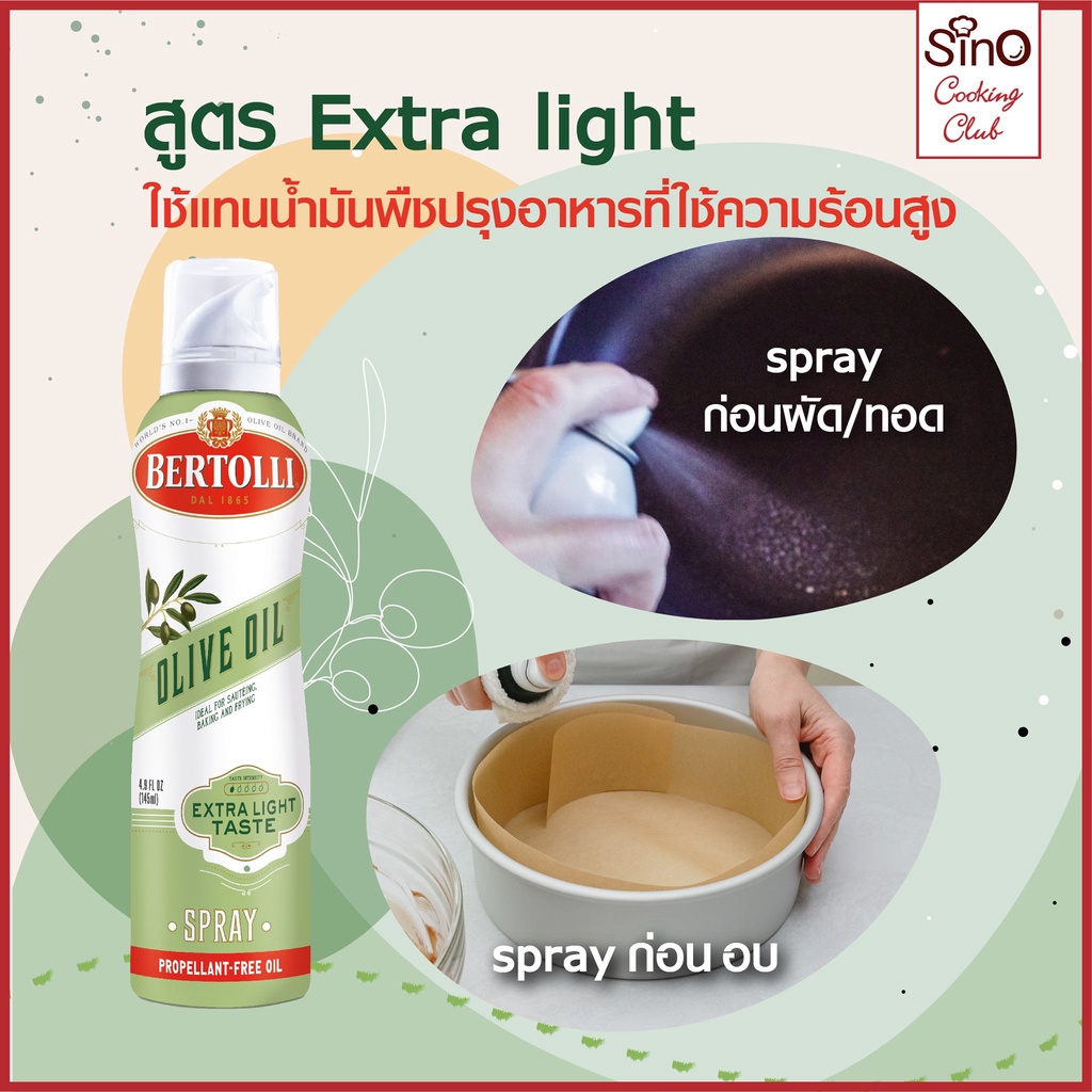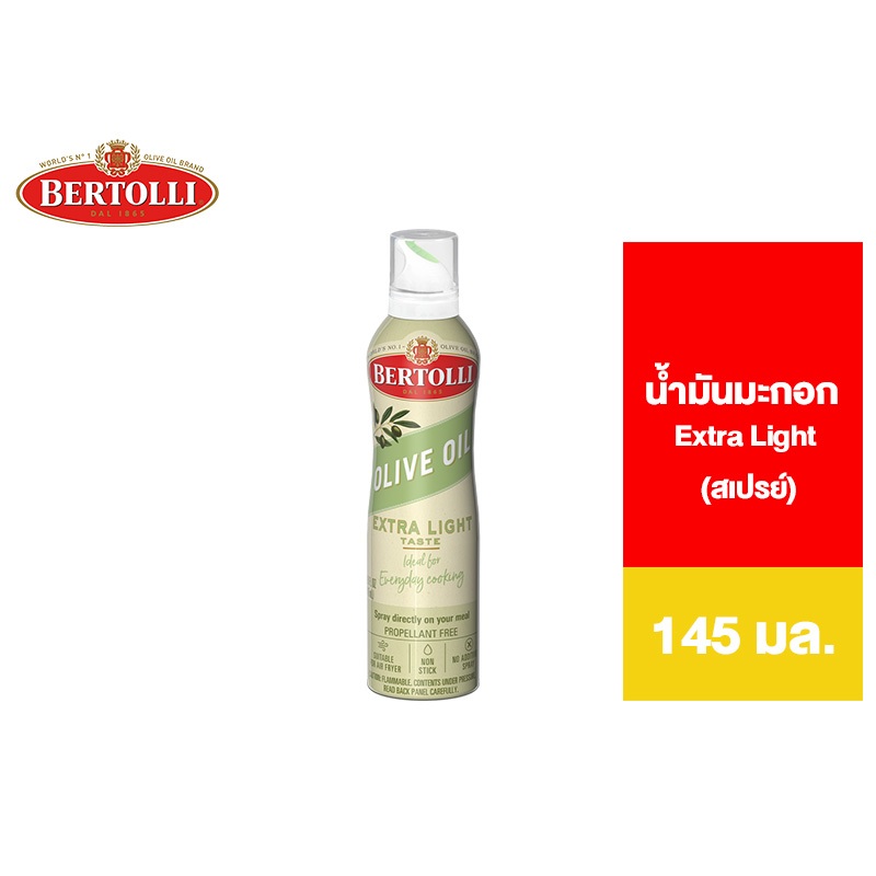 Bertolli Extra Light Olive Oil Spray เบอร์ทอลลี่ เอ็กซ์ตร้า ไลท์ น้ำมันมะกอกแบ บสเปรย์ ผ่านกรรมวิธี 145มล.