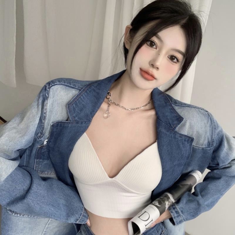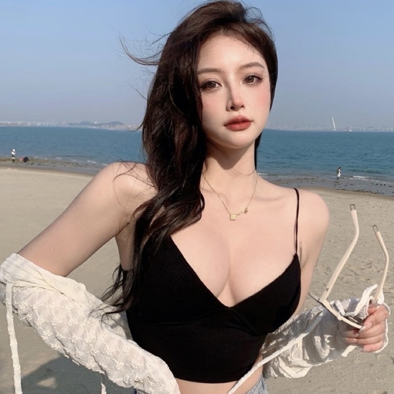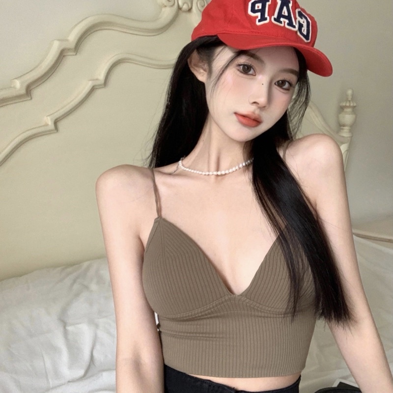 Bentoy(bratop1833)เสื้อสายเดี่ยวครอป หน้าวี มีฟองน้ำ รัดรูป เซ็กซี่