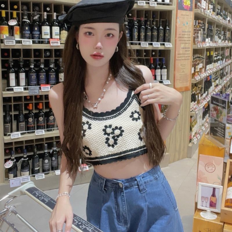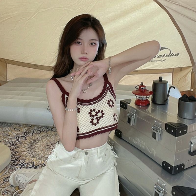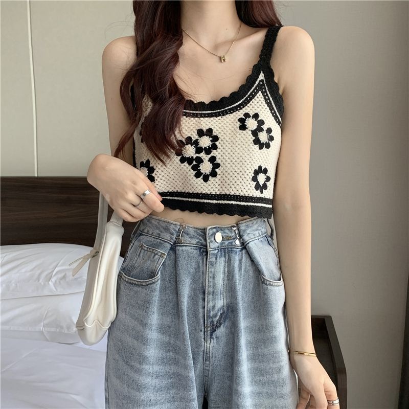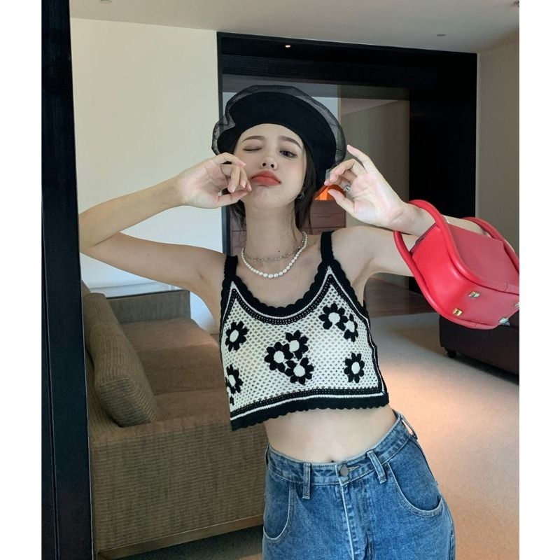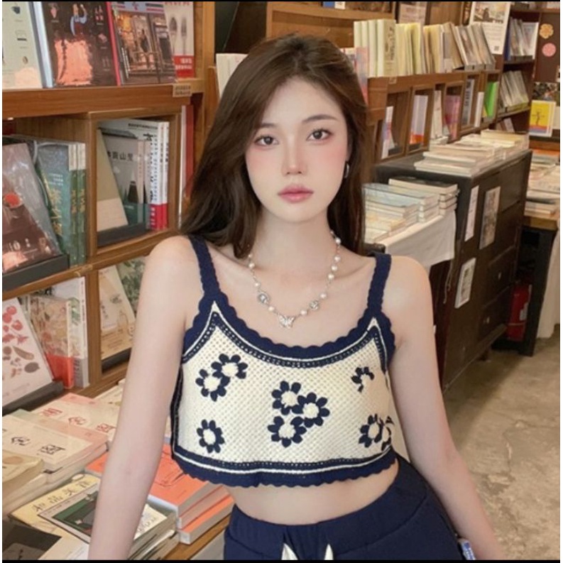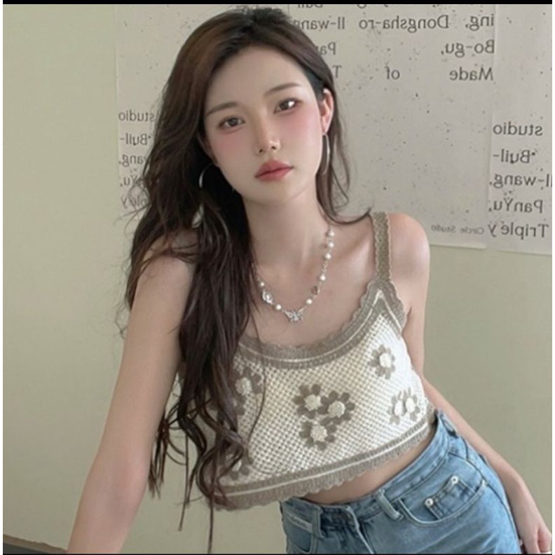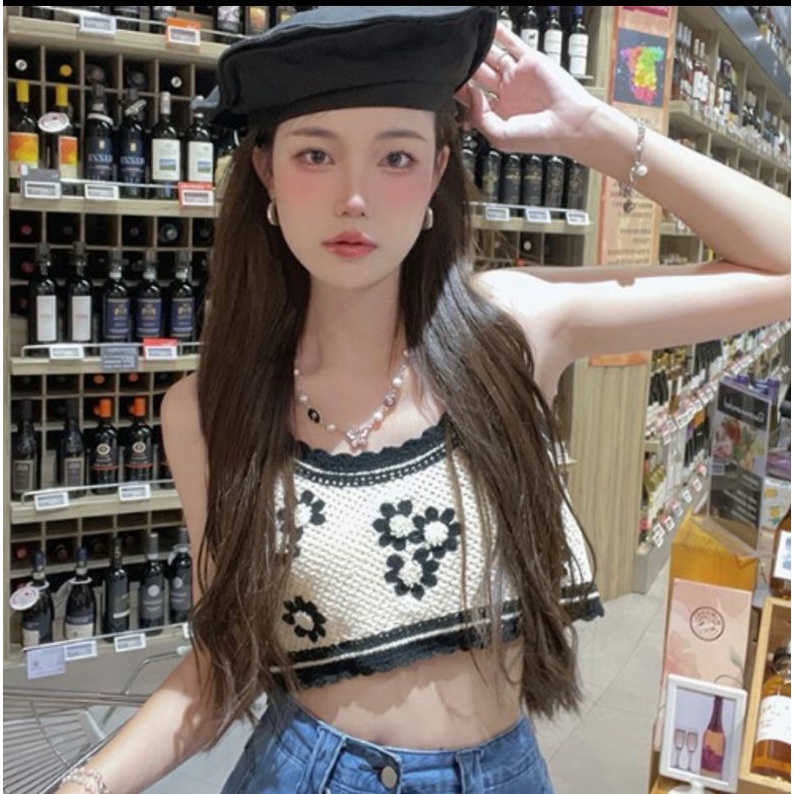 Bentoy(1970)เสื้อสายเดี่ยวงายถักไหมพรม ถักลายดอกไม้ มี4สีย่ารักมาก