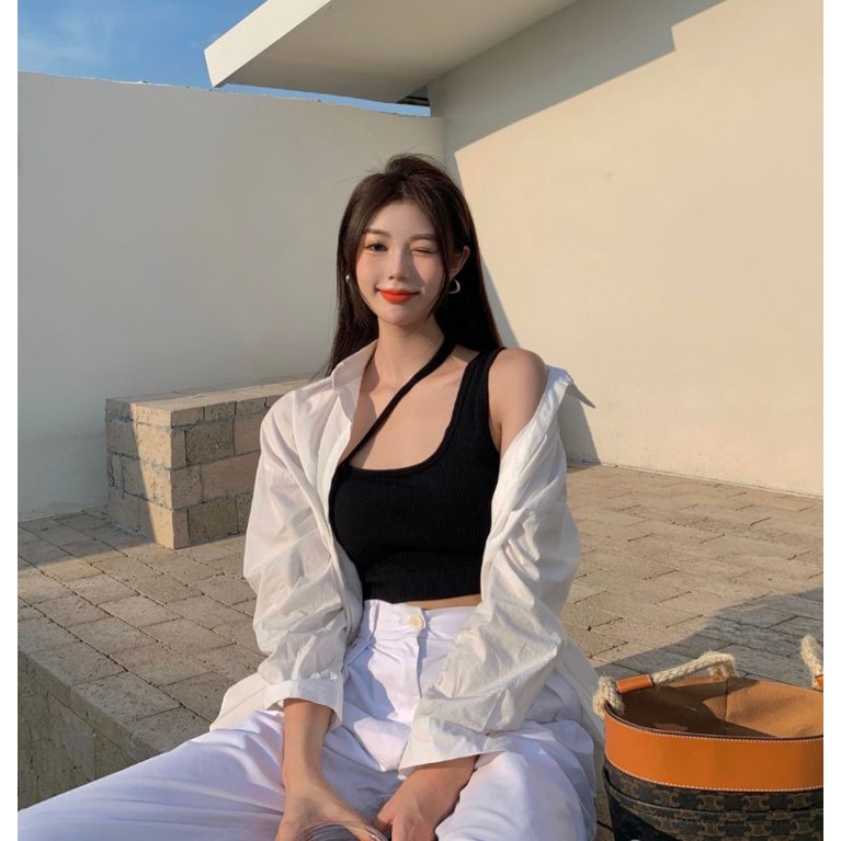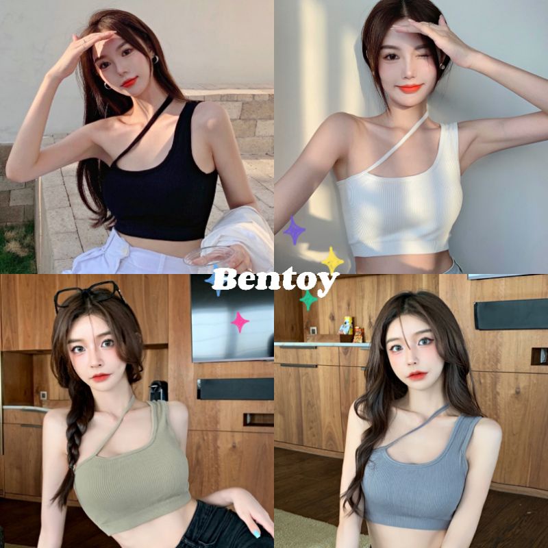 Bentoy(bratop1923)เสื้อกล้ามสายเดี่ยวมีฟองน้ำในตัว เนื้อผ้าทอร่องยืดได้เยอะ ใส่สบายแมทช์ง่ายสุดๆ