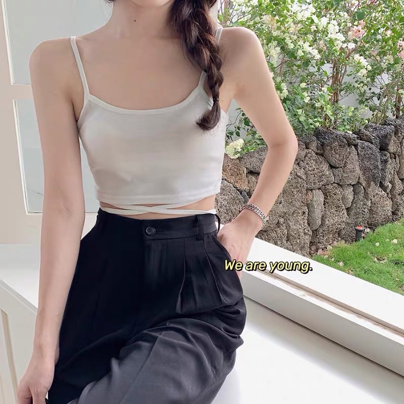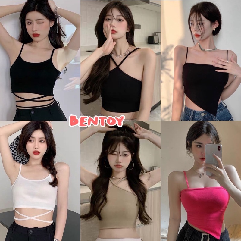 Bentoy(B029/B027/B025)ครอปสายเดี่ยวผูกเอว สายเดี่ยวพร้อมสายไขว้ผูกเอว สุดเก๋ มินิครอป ราคาถูก