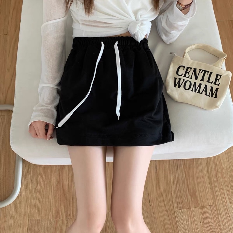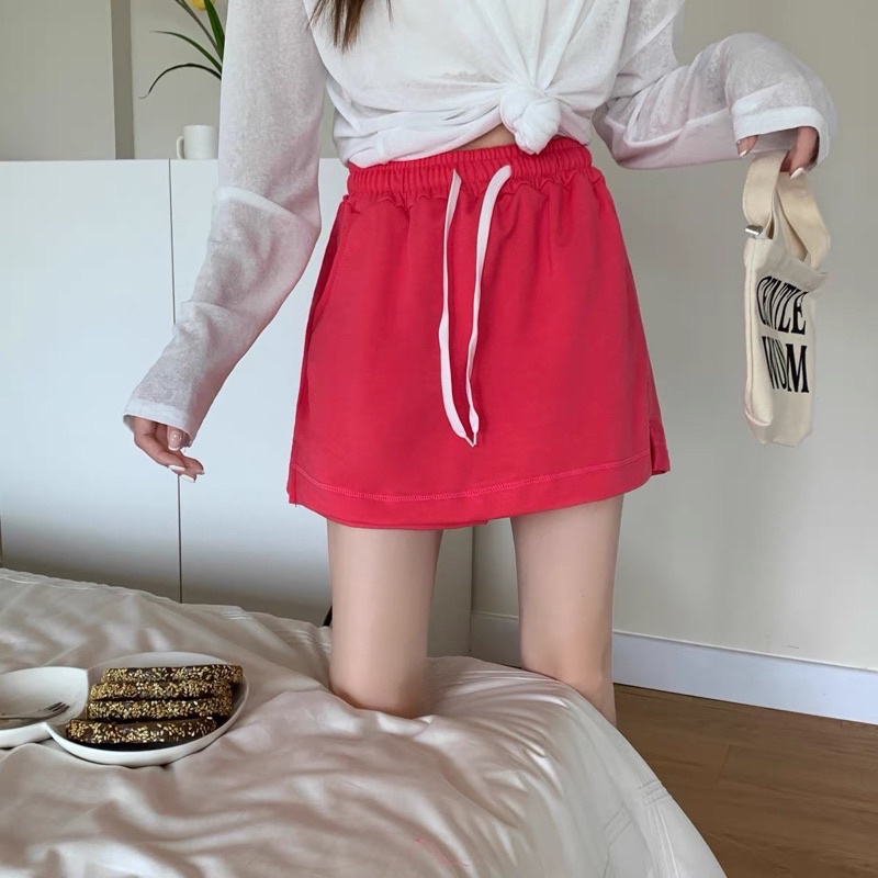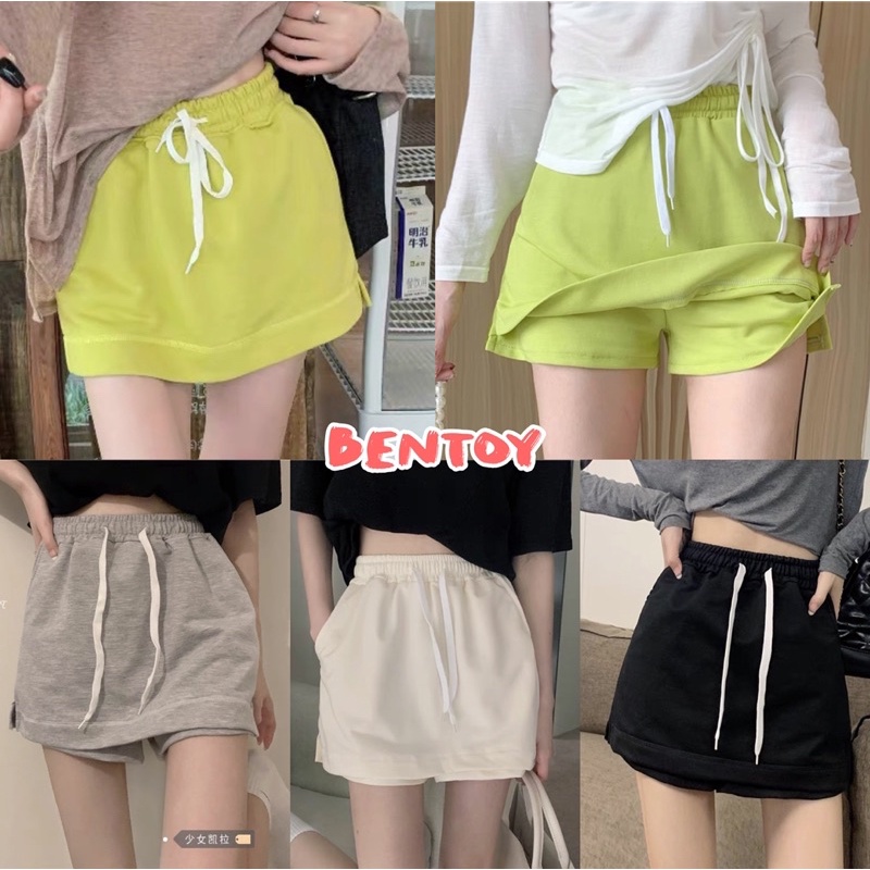 Bentoy(KQ4)กระโปรงกางเกง ขาสั้น เอวยืด ผ้านิ่มใส่สบาย สองชั้น ข้างหลังเป็นกางเกง