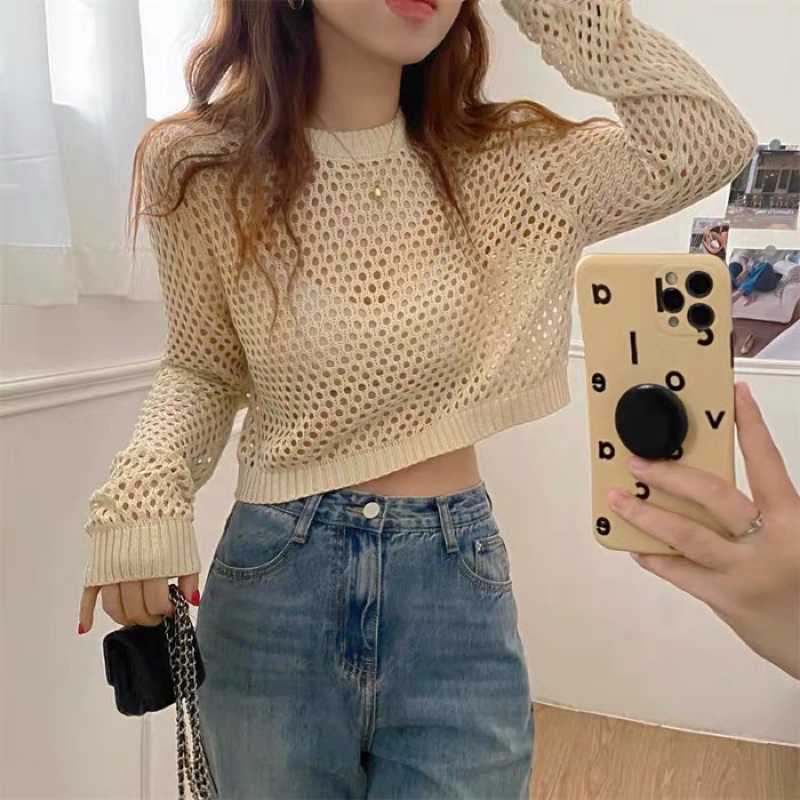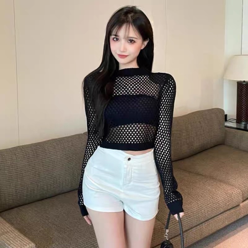 Bentoy(81058)เสื้อครอปไหมพรม แขนยาว ต่าข่าย ใส่คุลมสายเดี่ยวคือปังมาก จะใส่เดี่ยวก็แซ่บ