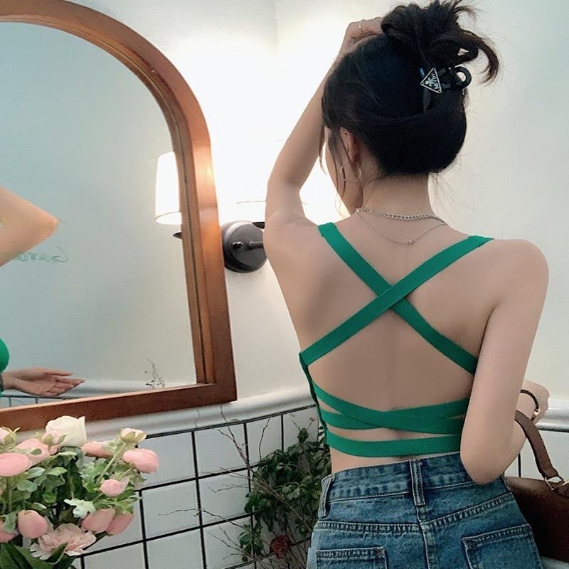 Bentoy(bratop48343)ครอปเสื้อกล้าม เว้าหลัง เสริมฟองน้ำ มีฟองน้ำ รัดรูป เซ็กซี่