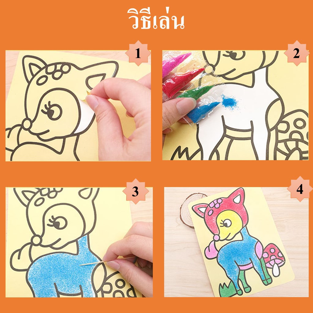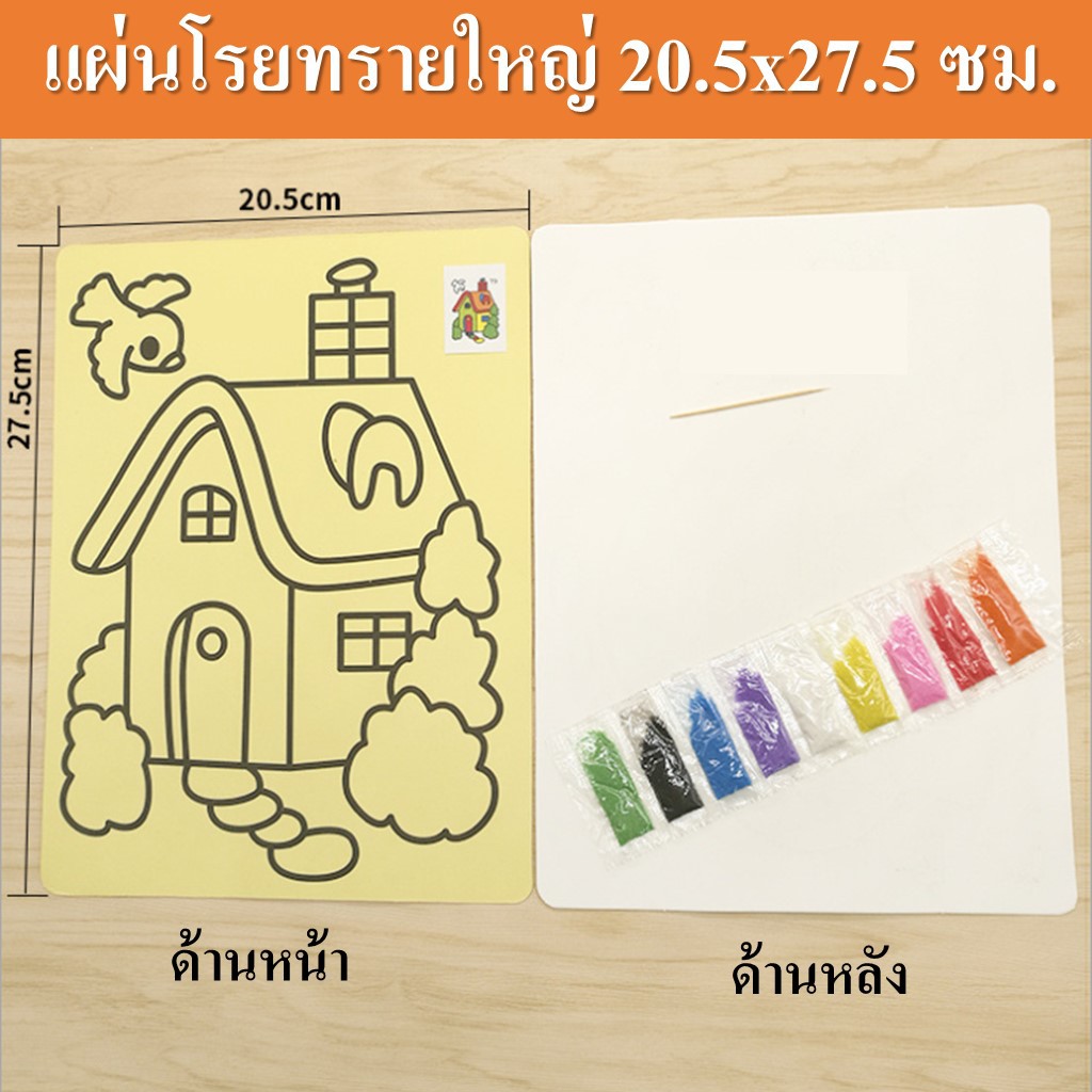 🔥จ่าย0฿โค้ดINCEL12🔥แผ่นโรยทราย/ภาพสติ๊กเกอร์โรยทรายสี ใหญ่ 20.5x27.5 cm. ของเล่น DIY ศิลปะสำหรับเด็ก