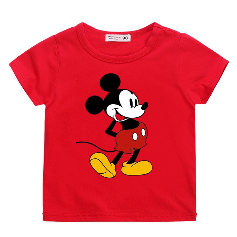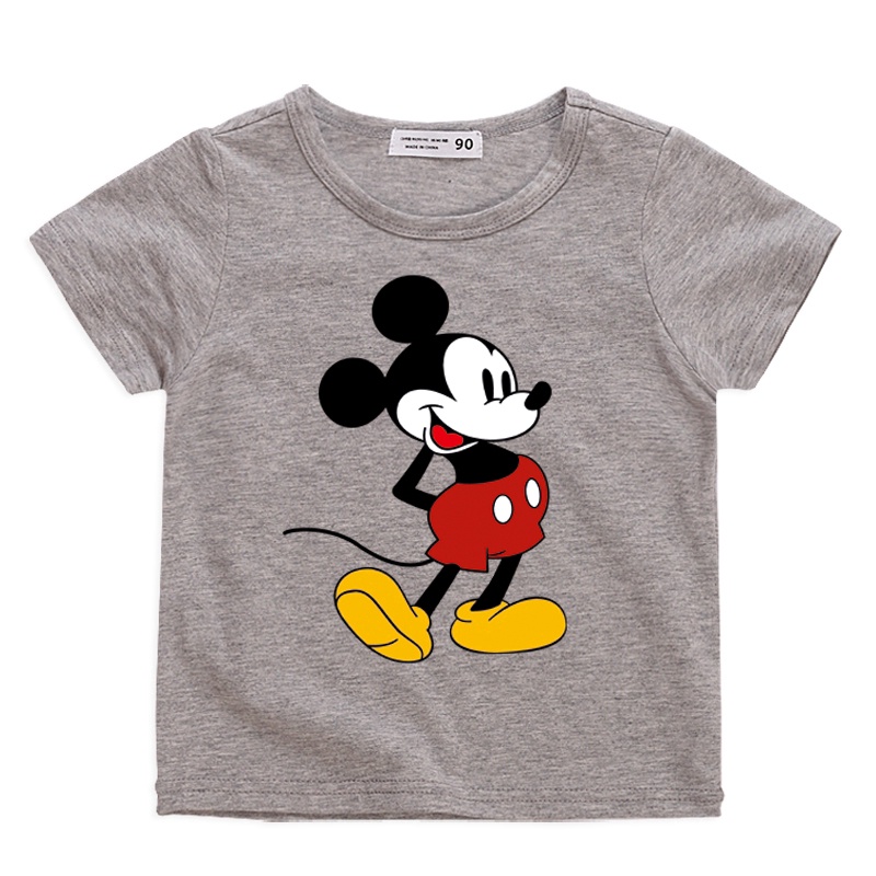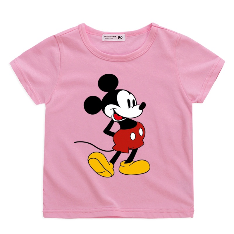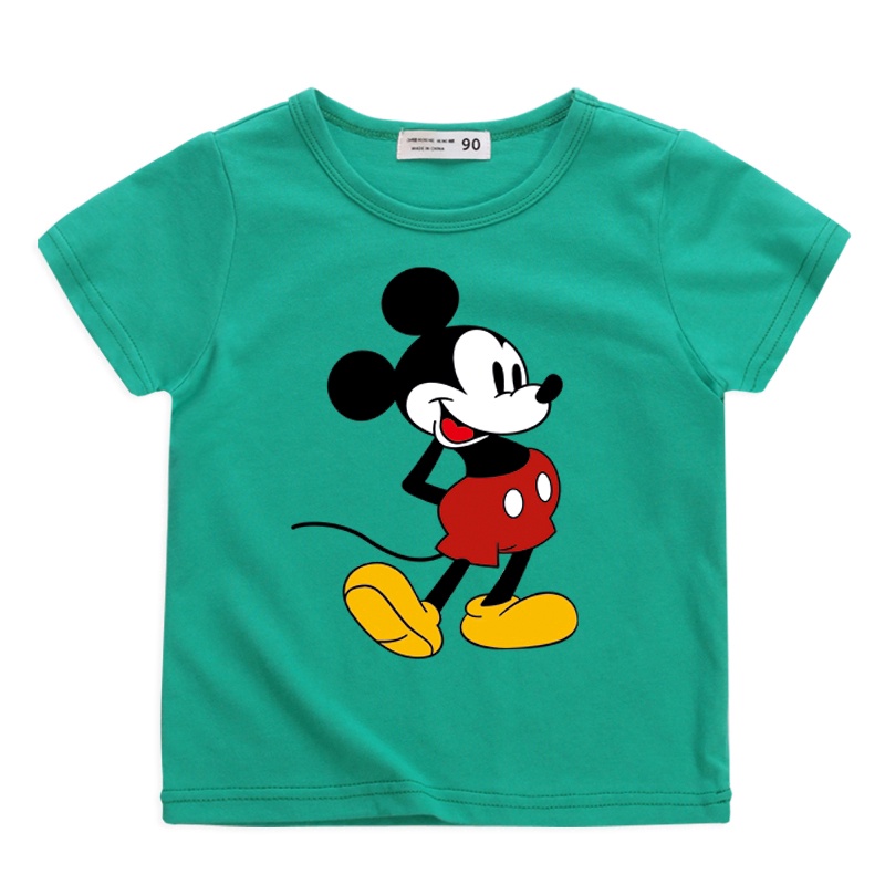 เสื้อยืดแขนสั้น ผ้าฝ้ายพรีเมี่ยม พิมพ์ลายมิกกี้เม้าส์ สำหรับเด็ก 8 สี