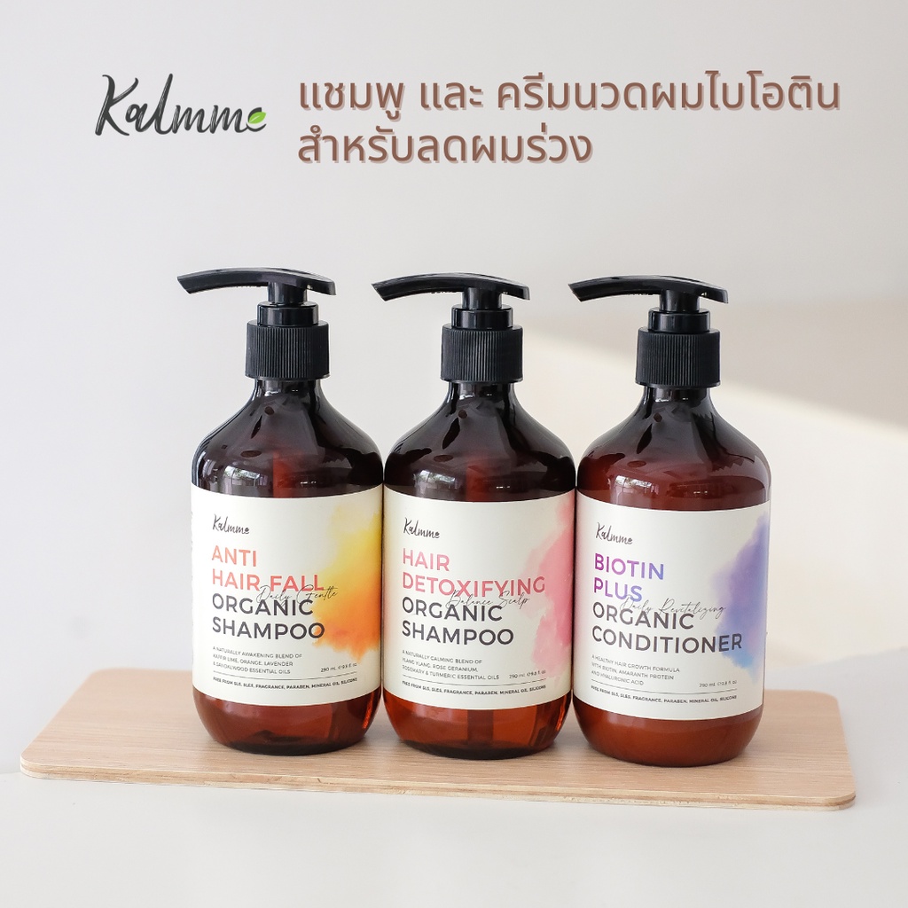 Kalmme แชมพู Aromtherapy - แชมพูลดผมร่วง | แชมพูดีท็อกซ์ | ครีมนวดผมไบโอติน สูตรออร์แกนิค