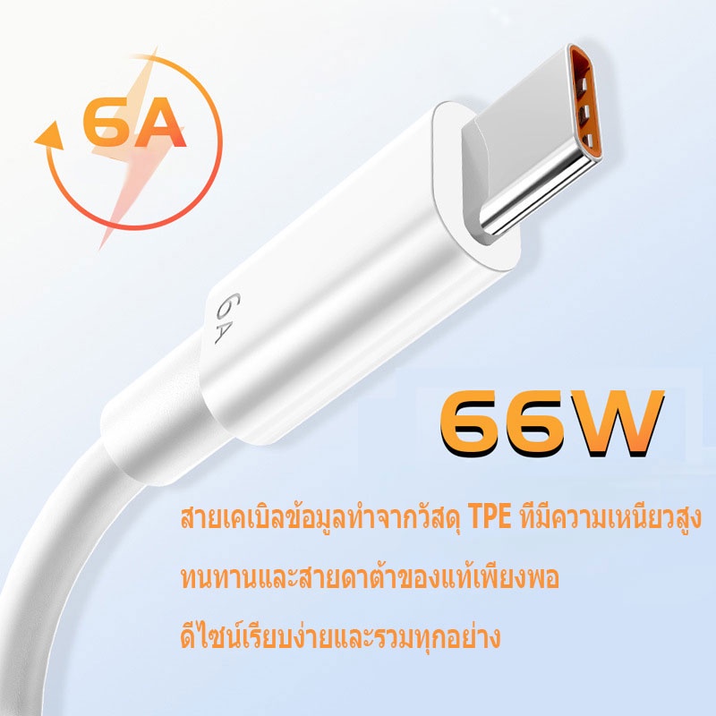 MGBB สายชาร์จ Type-C ชาร์จเร็ว สำหรับ ชาร์จด่วน ไฟเร็ว ซิงค์ข้อมูลอย่างเสถียร สายชาร์จแท้6A Super Fast Charging Cable