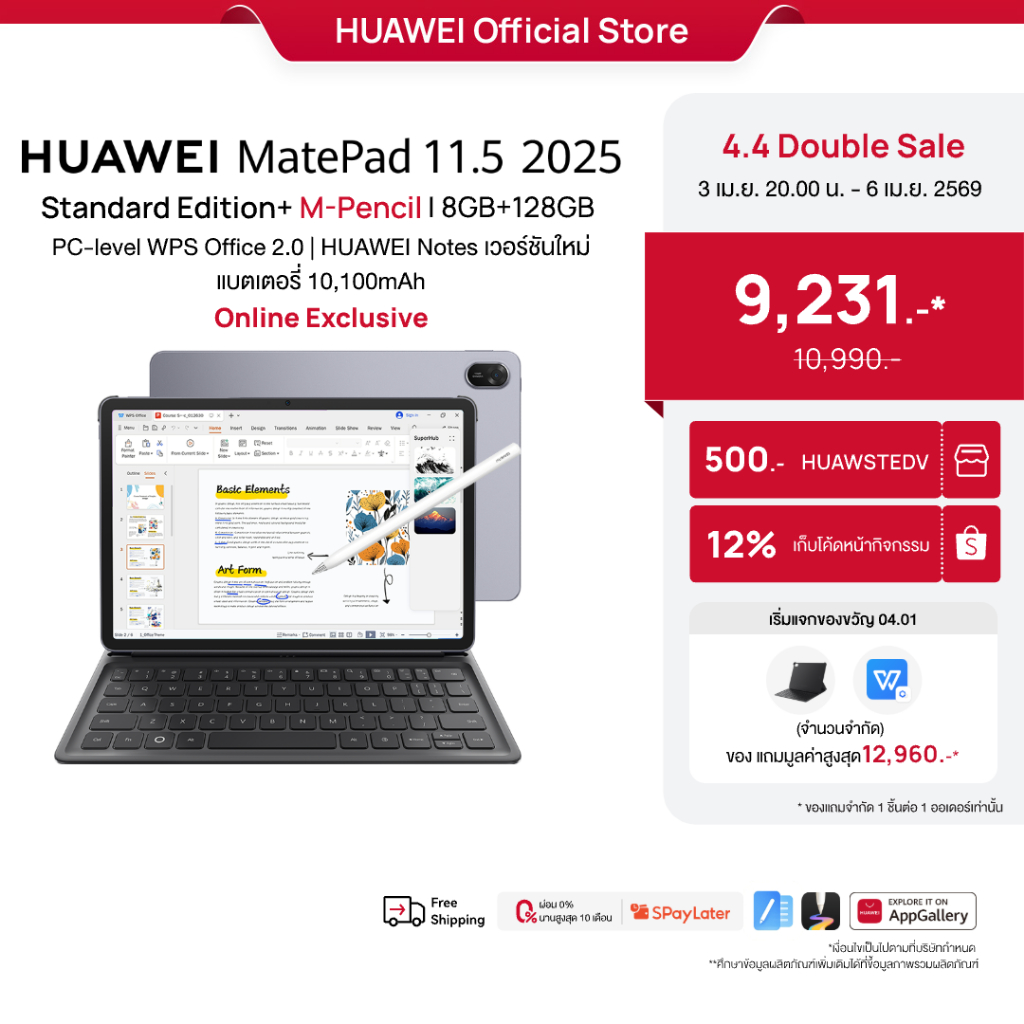 [4.3 20.00 - 4.6 | โค้ดลดเพิ่ม 12% | NEW] HUAWEI MatePad 11.5 2025 Standard Edition | แท็บเล็ต | PC-level WPS Office 2.0