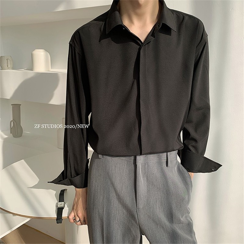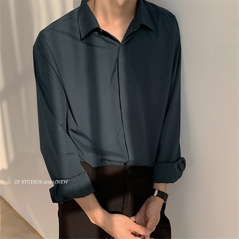 MAXXI [M-2XL] เสื้อเชิ้ตแขนยาวผู้ชาย สไตล์เกาหลี สีพื้น พร้อมส่งทุกไซส์#108