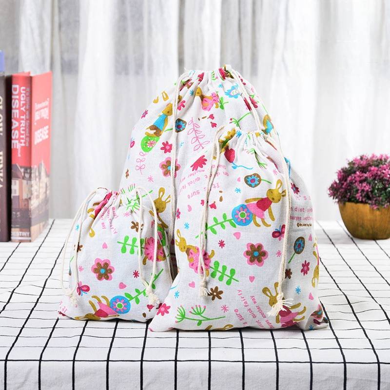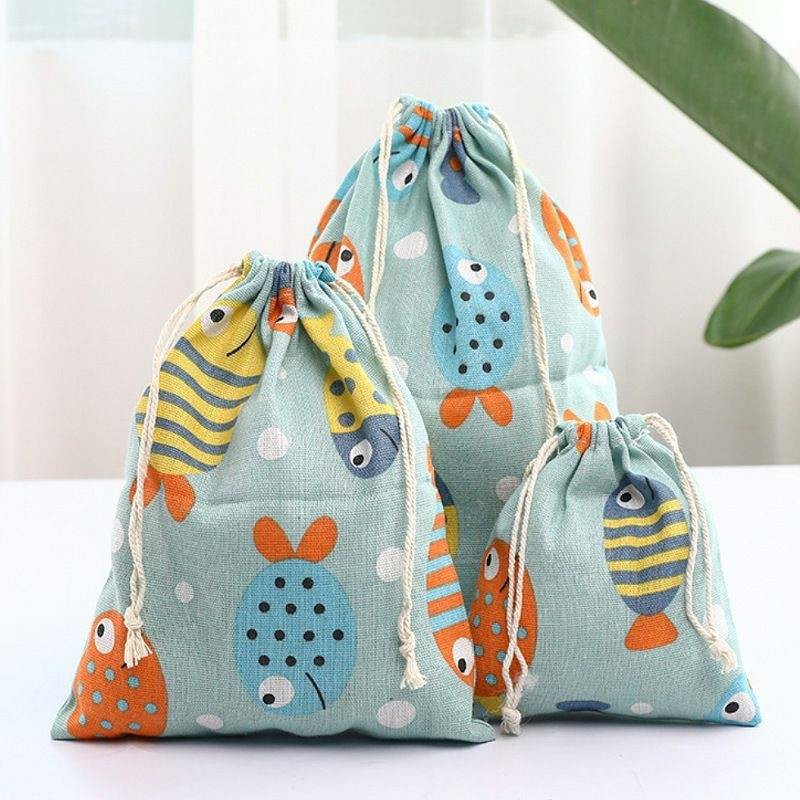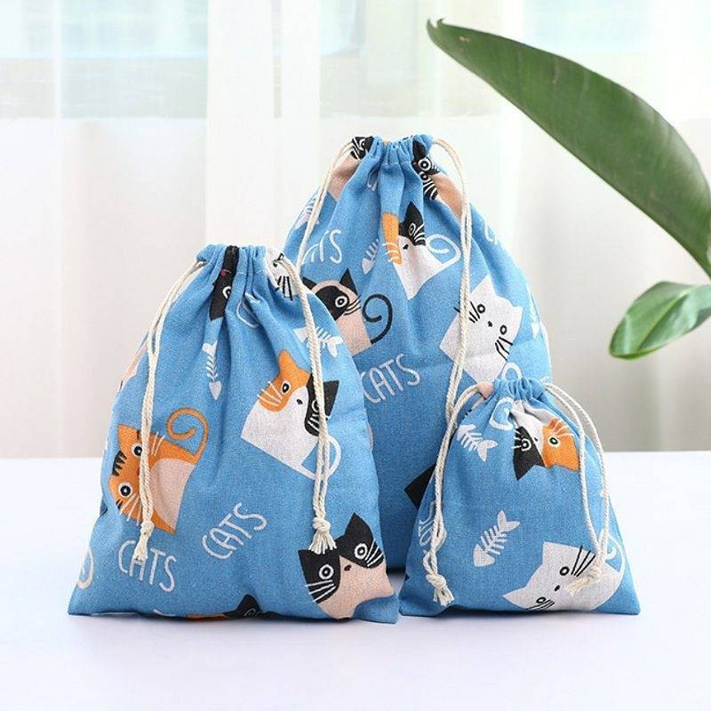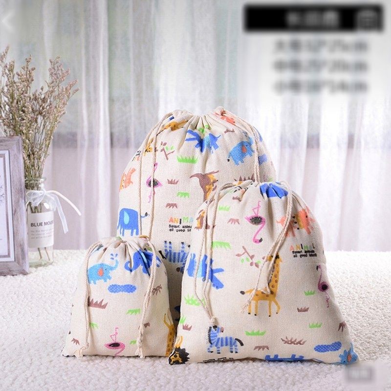 🇹🇭พร้อมส่งจากไทย🇹🇭ถุงผ้าฝ้ายหูรูดลายสัตว์/มี3ขนาด/ถุงผ้าแคนวาส