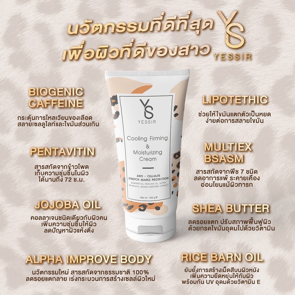 [EXP: 05/2026] Yessir เยสเซอร์ ครีมกระชับสัดส่วน ลดรอยแตก และเซลลูไลท์ 150ml Cooling Firming & Moisturizing cream