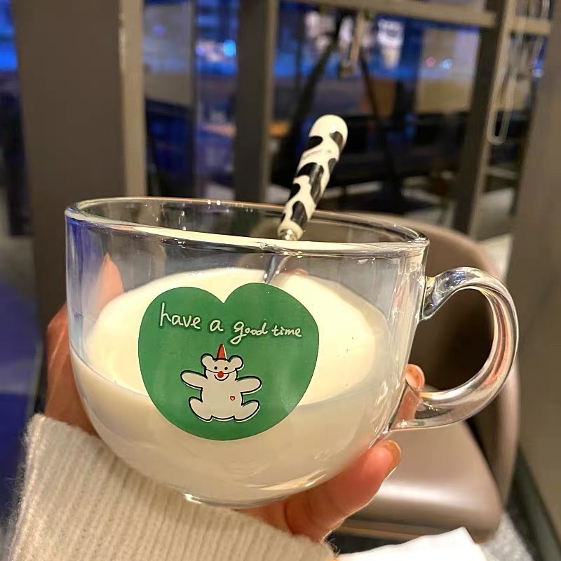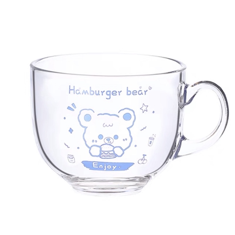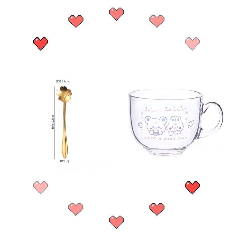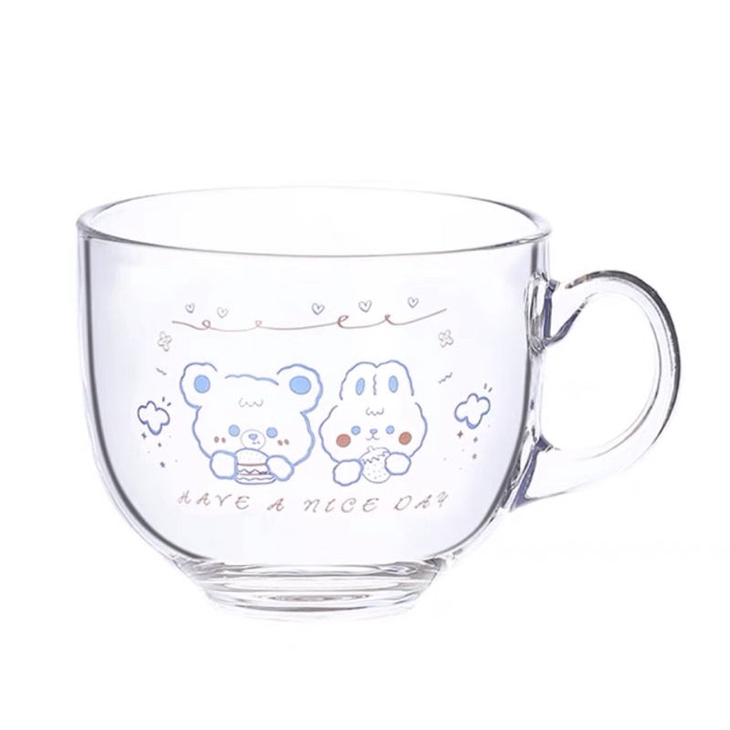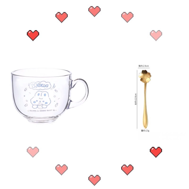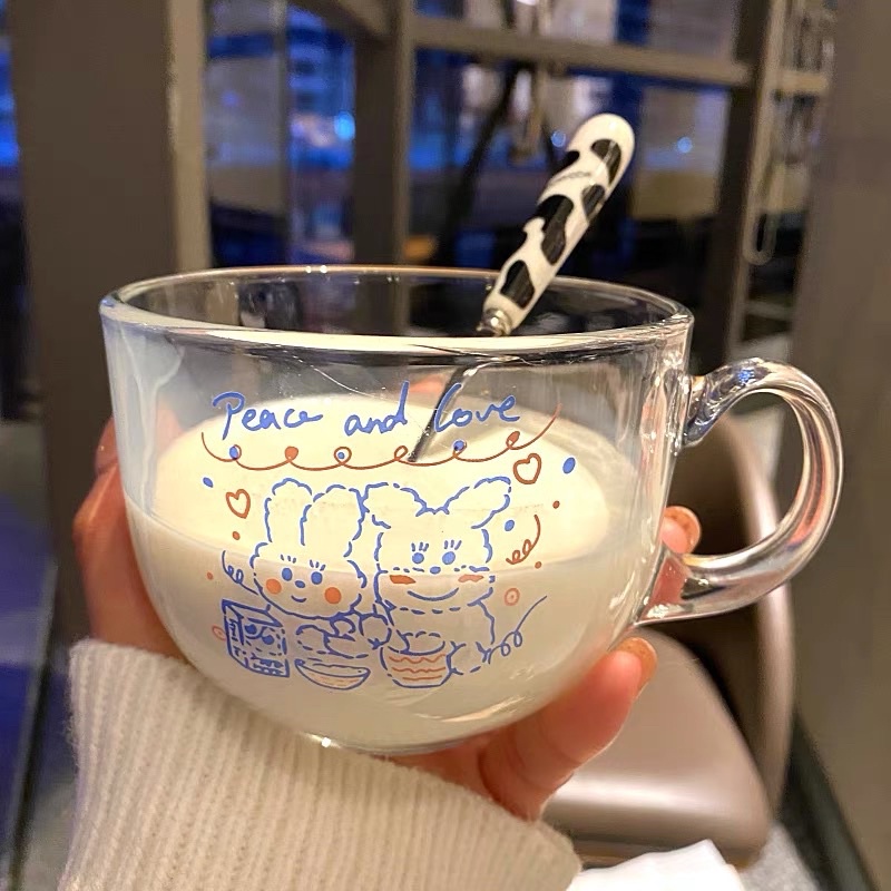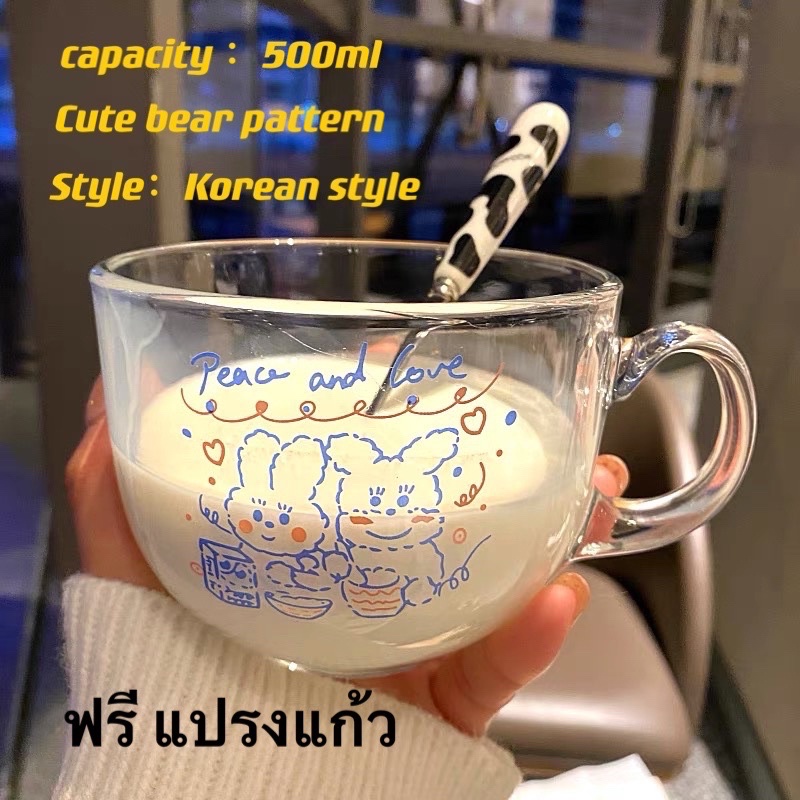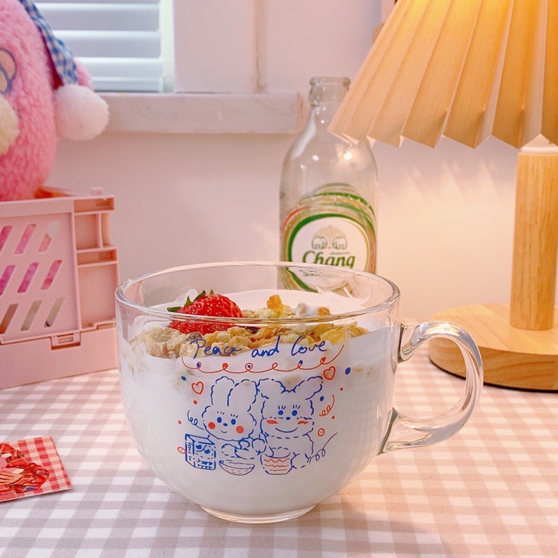 ❤ถ้วยแก้วสไตล์เกาหลี ลายกระต่ายน่ารัก ความจุขนาดใหญ่ 500 มล. กินซีเรียลและนม ของขวัญที่ดีที่สุดสำหรั