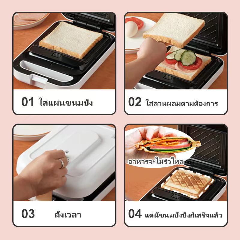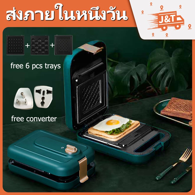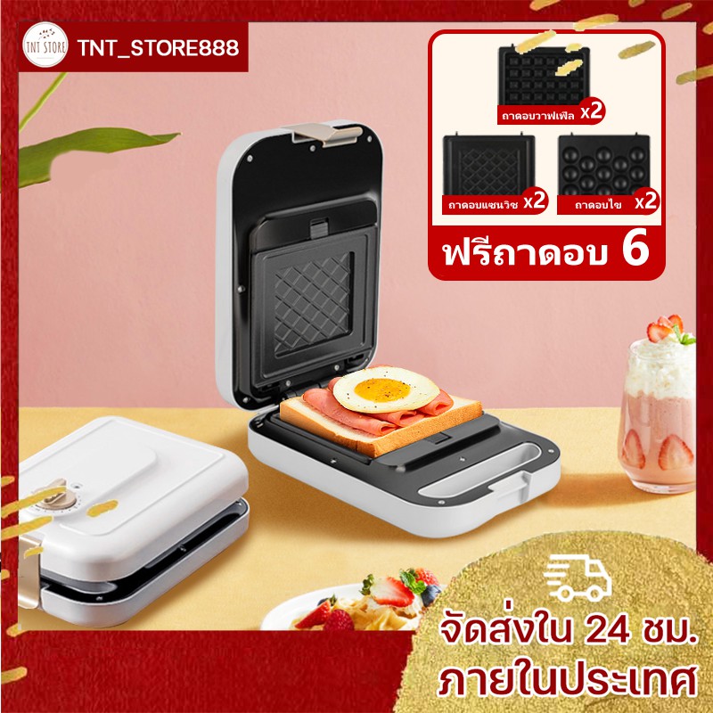 [❤️พร้อมส่ง] เครื่องทำแซนวิช ฟรีถาดอบ6ถาด ทำได้ทั้งแซนวิซและวาฟเฟิล เครื่องทำเมนูอาหารเช้า