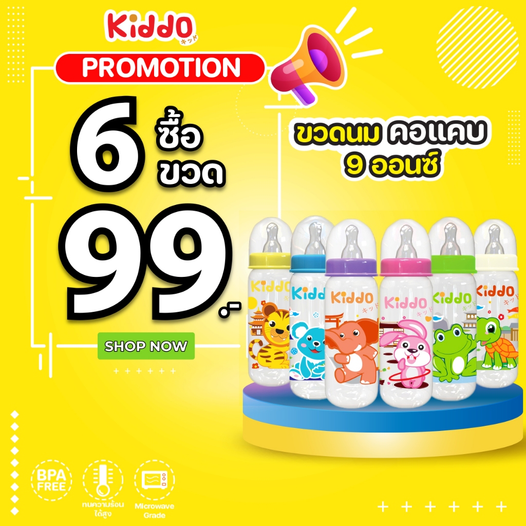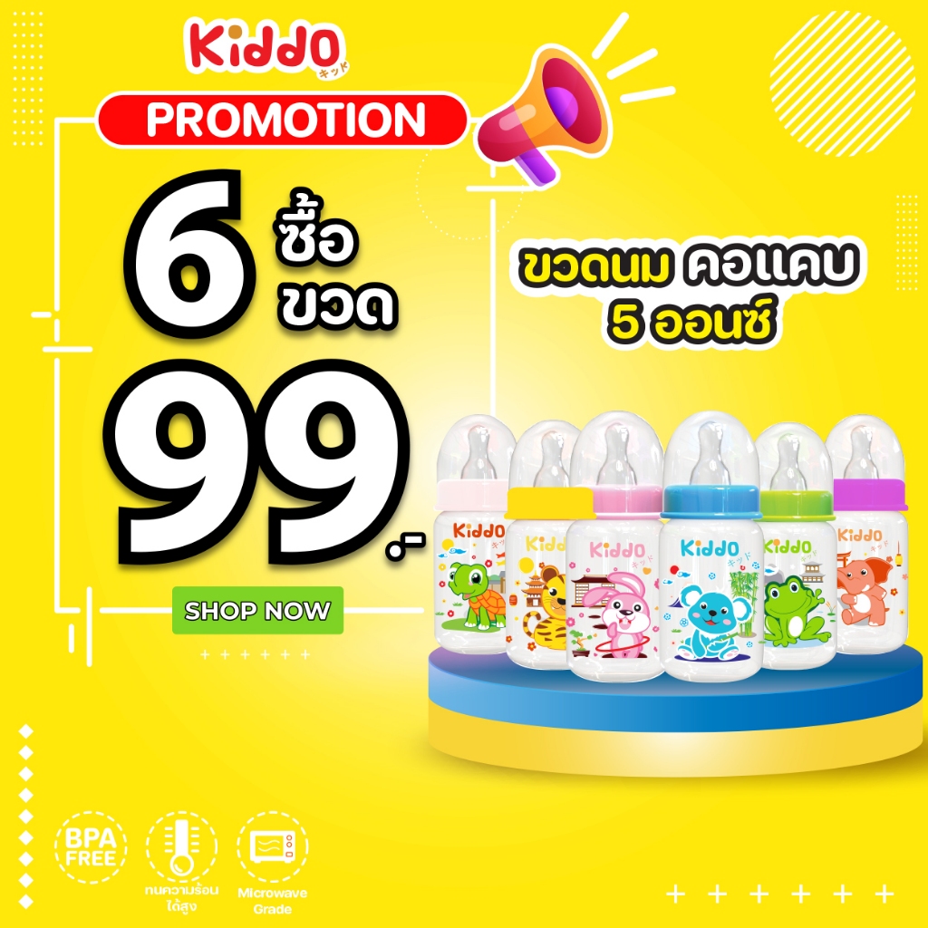 [แพ็ค6] ขวดนม 5และ 9ออนซ์ ทนความร้อนได้ 110องศา kiddo ขวดนมเด็ก ขวดนมคอแคบ baby bottle