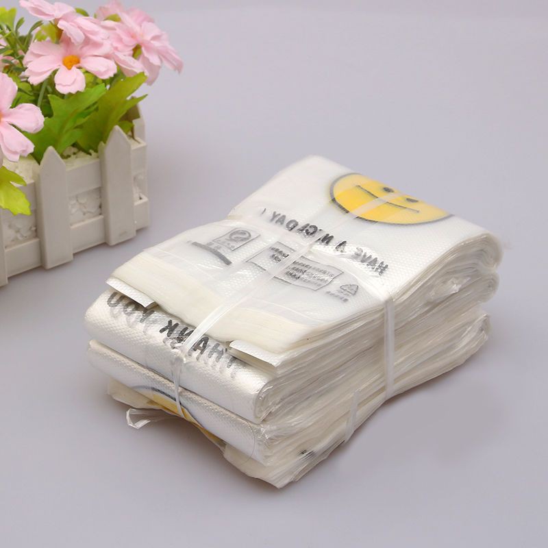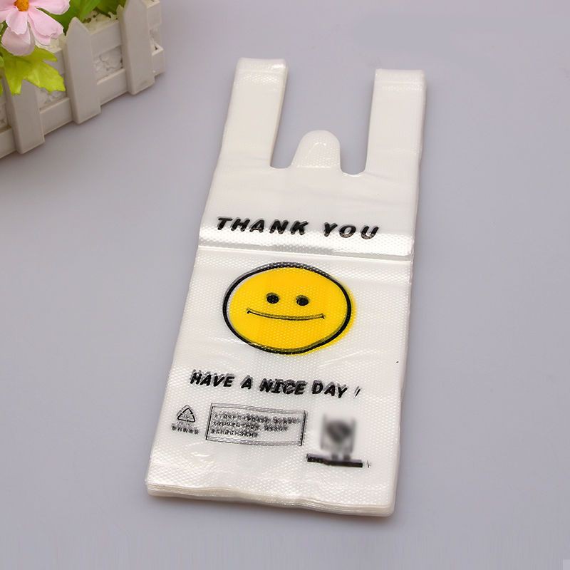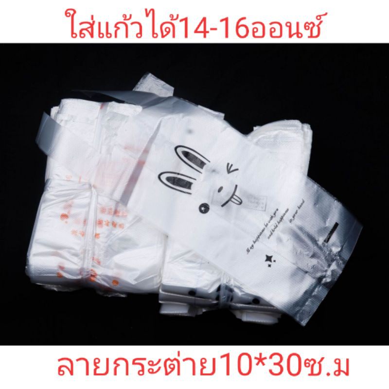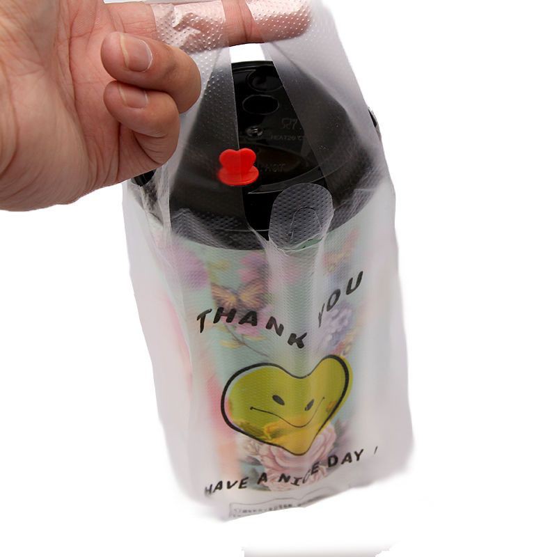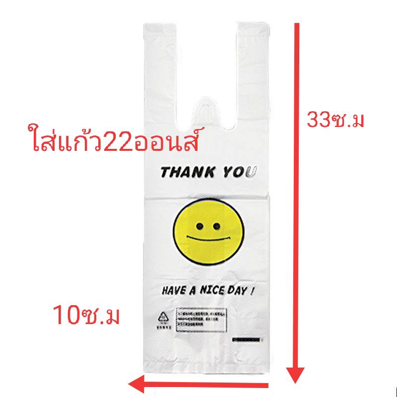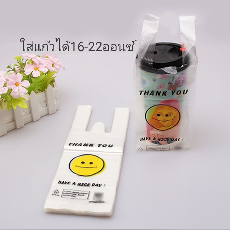 ถุงพลาสติกใส่แก้วกาแฟแก้วน้ำ พิมพ์ลายหน้ายิ้ม แพ็ค100ใบ(พร้อมส่ง)