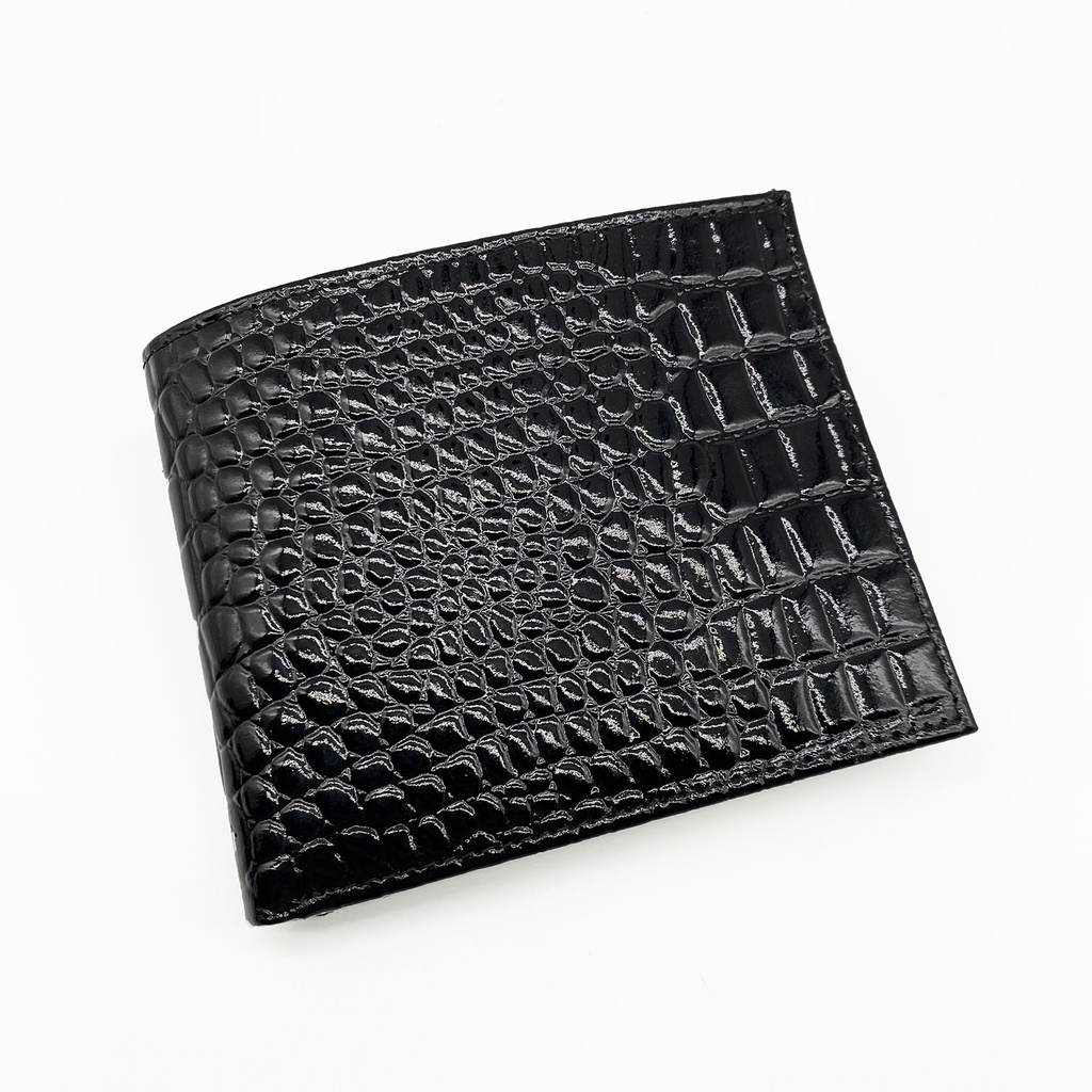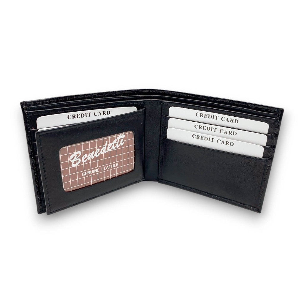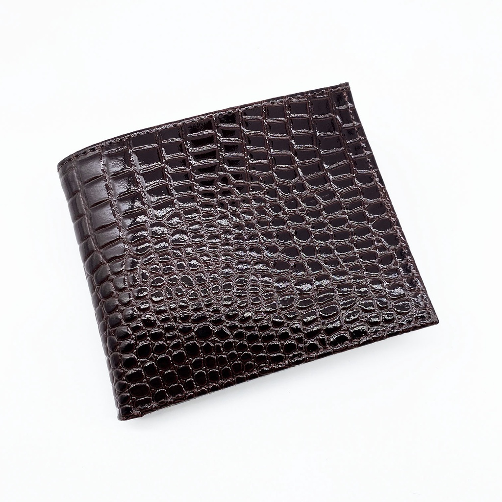 Benedetti 189 กระเป๋าสตางค์ หนังแท้ อัดลายจระเข้ เคลือบแก้ว สองพับ แบบมีปีก 2 สี ดำ / น้ำตาลเข้ม