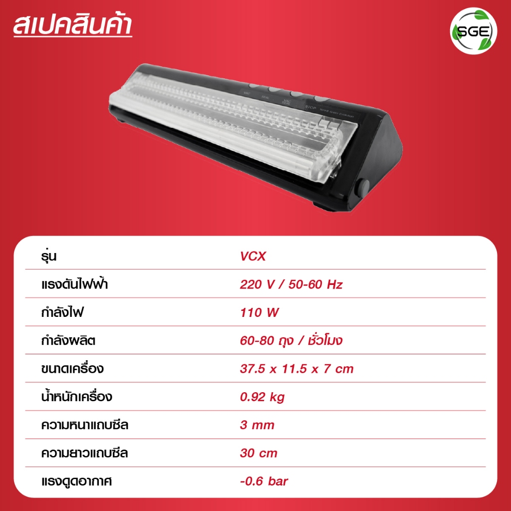 SGE เครื่องซีลสูญญากาศ แบบครัวเรือน รุ่น VCX ซีลบล็อคข้าวได้ แถบซีลหนา 3 มม. มีประกันศูนย์ไทย