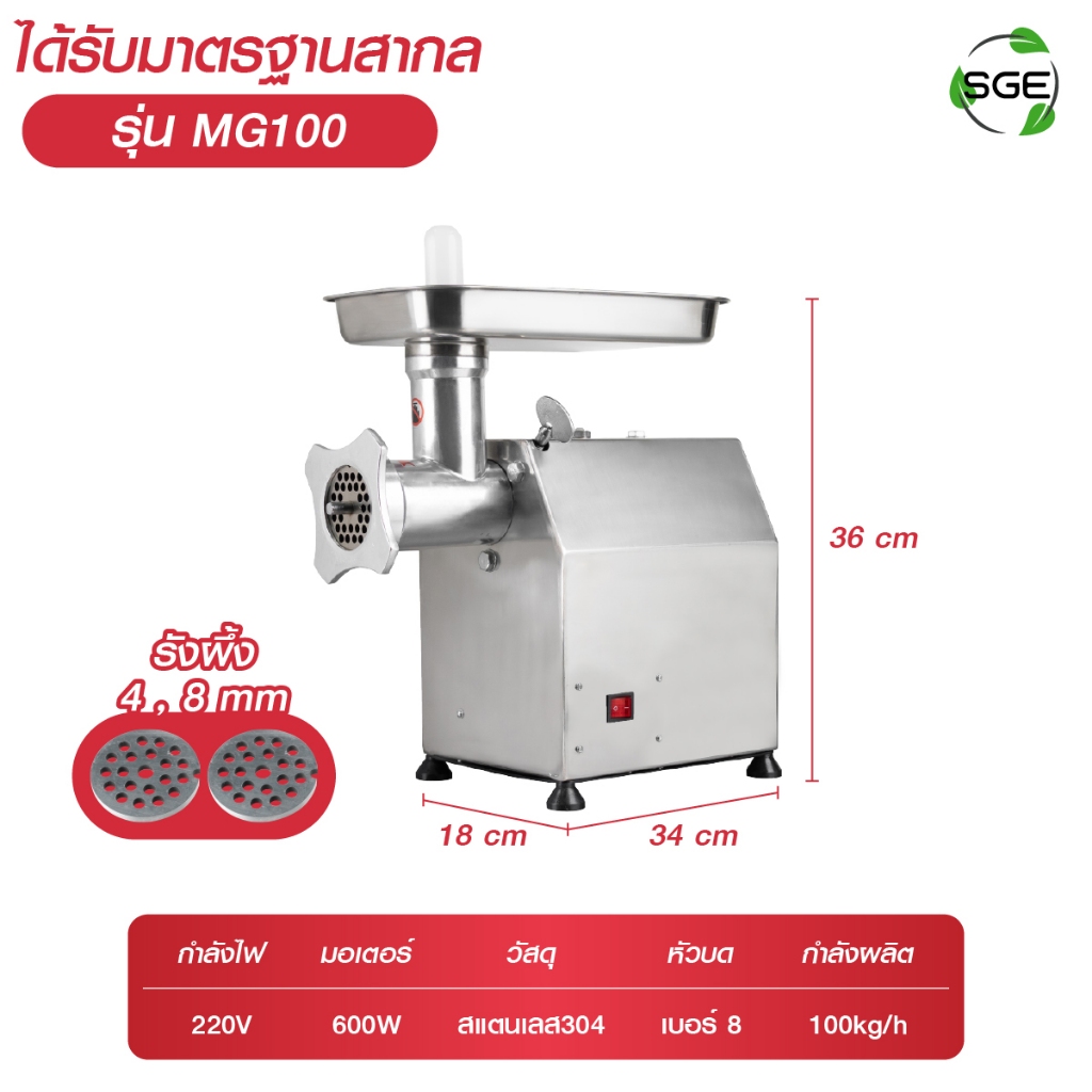 SGE เครื่องปั่น เครื่องบด บดหมู รุ่น MG วัสดุสแตนเลส 304 กำลังผลิตสูง แถมฟรีรังผึ้ง 2 ขนาด ศูนย์ไทย