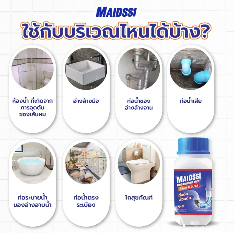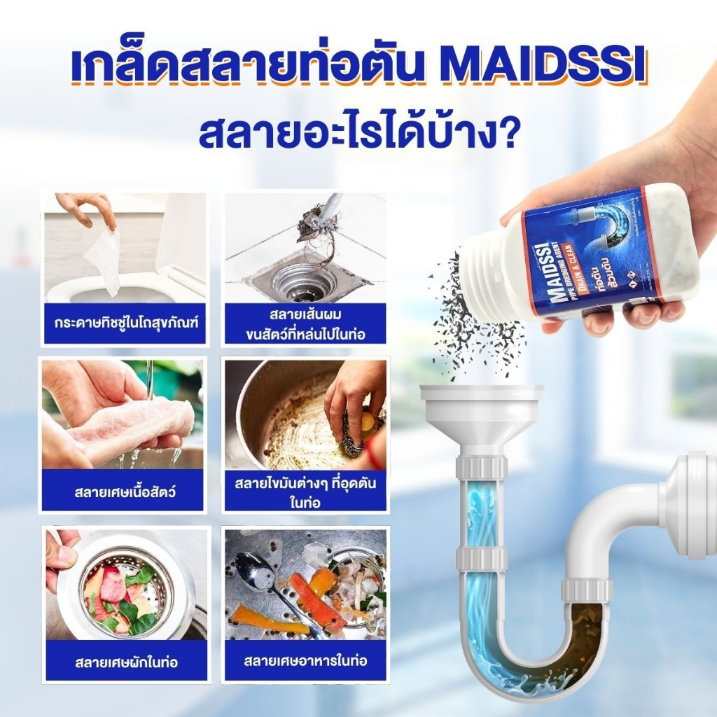 เกล็ดสลายท่อตัน MAIDSSI มี อย. แก้ปัญหาท่อตัน ส้วมตัน น้ำขัง