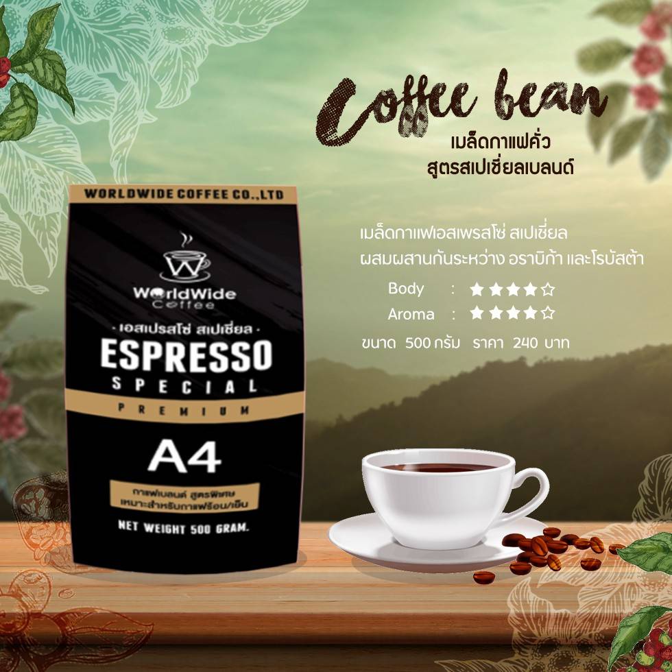 [สินค้าแพ็คคู่2ถุง] เมล็ดกาแฟคั่วสดใหม่ Blen Arabica & Robusta สูตร A4 ขนาด 500 g. สินค้าขายดี