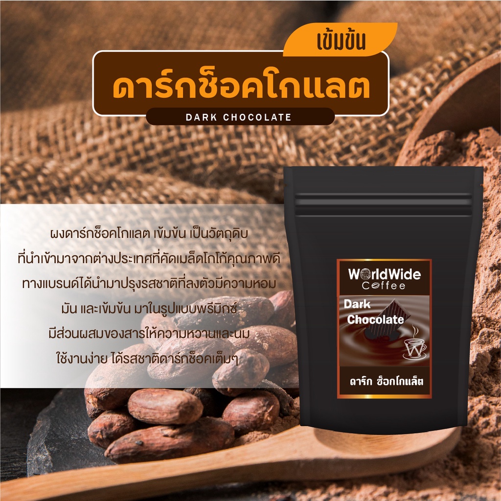 ผงดาร์กช็อคโกแลต Dark Chocolate หอม เข้มข้น อร่อย ขายดี วัตถุดิบนำเข้าจากต่างประเทศ ขนาด 500g.