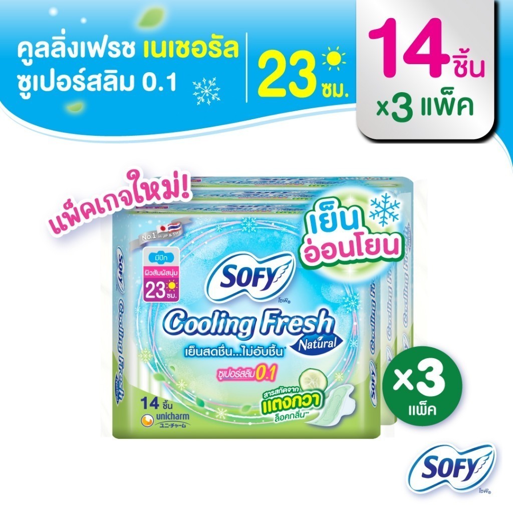 [เลือกความยาวเลย] Sofy โซฟี คูลลิ่ง เฟรช เนเชอรัล ผ้าอนามัยสำหรับกลางวัน/กลางคืน 23 - 35 ซม. (3 แพ็ค)