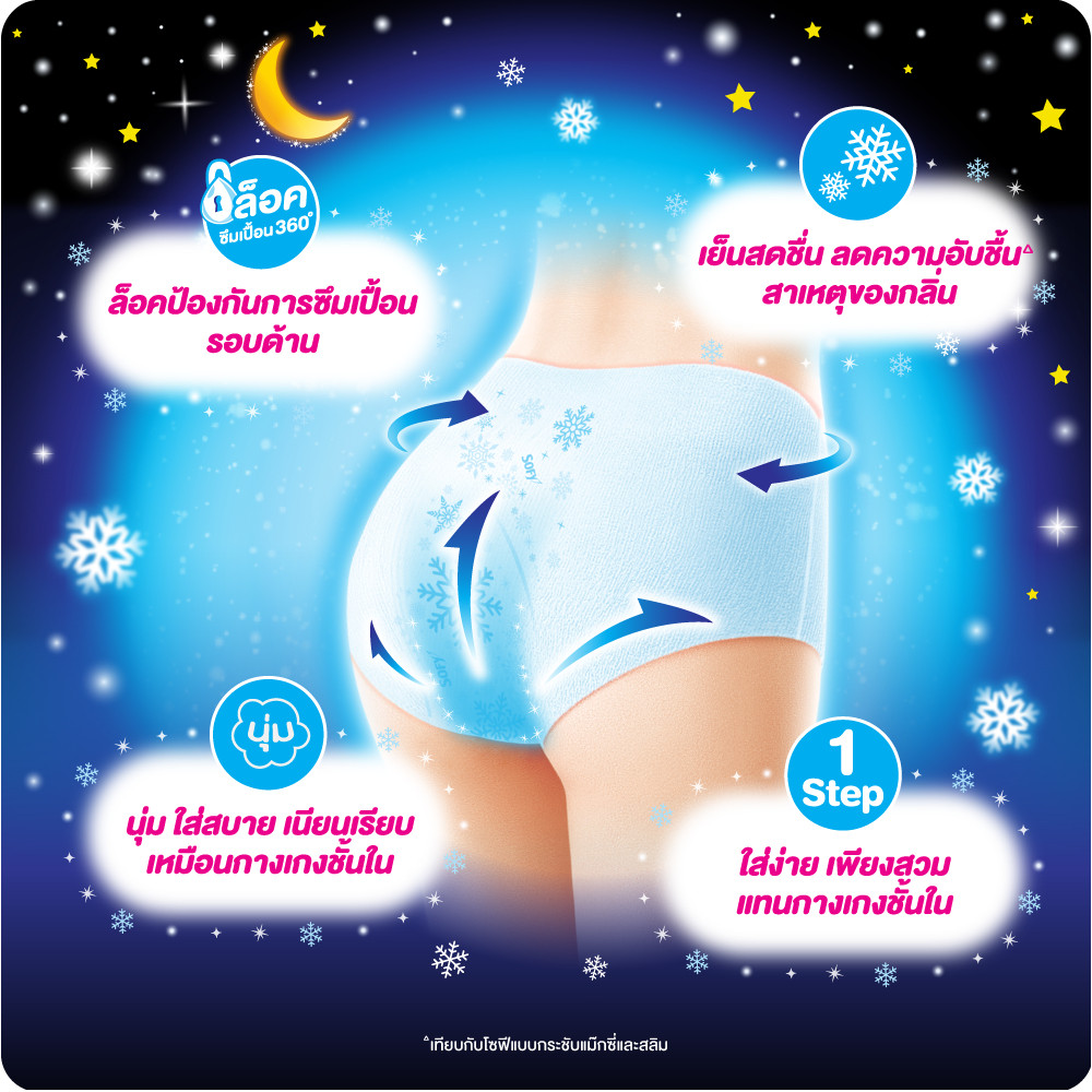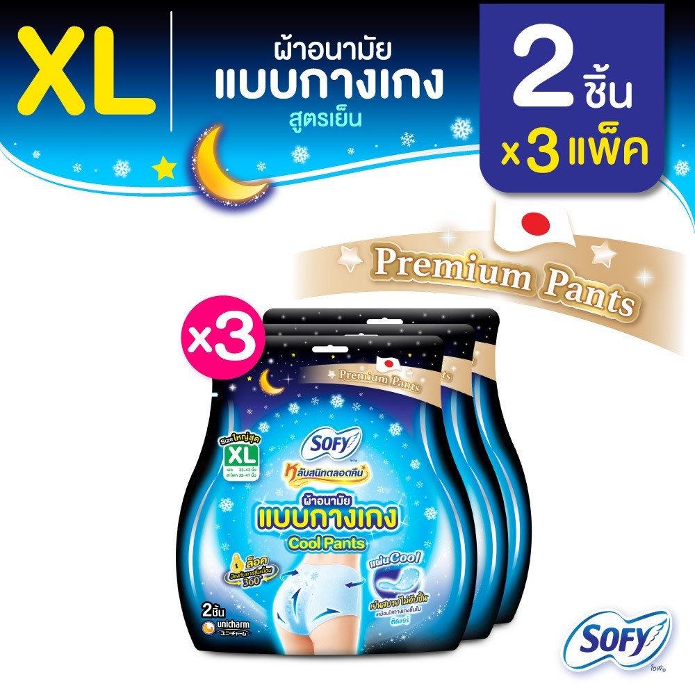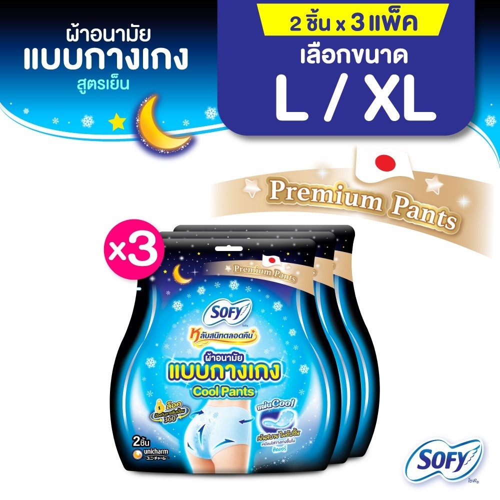 [เลือกไซส์เลย] Sofy โซฟี หลับสนิทตลอดคืน ผ้าอนามัย แบบกางเกง สูตรเย็น ไซส์ L/XL จำนวน 2 ชิ้น (3 แพ็ค)