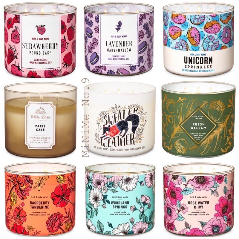 ✨Set2/6✨BBW เทียนหอม Fresh balsam/ Paris Cafe/ Sweater Weather Bath and Body Works White Barn 3 Wicks Candle 411g.