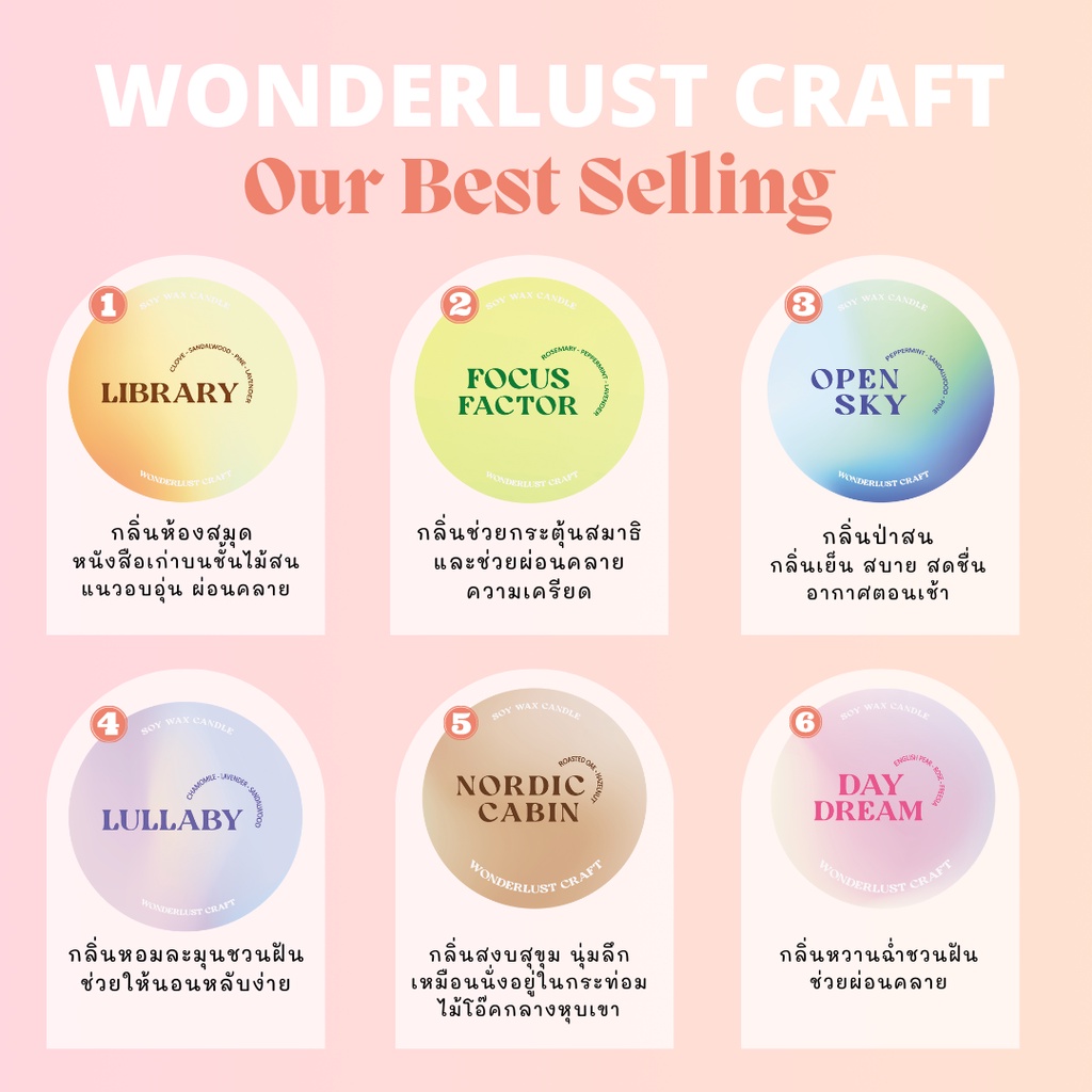 เทียนหอมไขถั่วเหลือง 100% ขนาด 50 กรัม มีให้เลือก 15 กลิ่น Wonderlust Craft