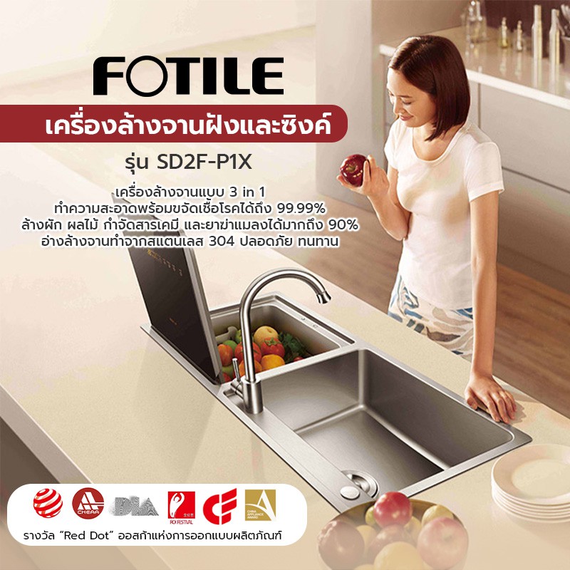 FOTILE เครื่องล้างจานฝัง+ซิงค์ รุ่น SD2F-P1X แบบ 3 in 1 ทำความสะอาดภาชนะผักผลไม้ ขจัดเชื้อโรค 99.99%