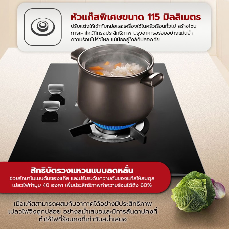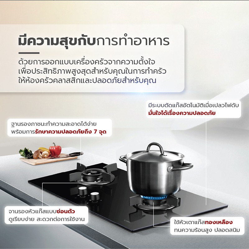 FOTILE เตาฝังแก๊ส FD2B 73 ซม. หัวเตาทองเหลือง ทนความร้อน ฐานรองทำจากเหล็กหล่อ ร้อนไว แก๊สไม่รั่วไหล
