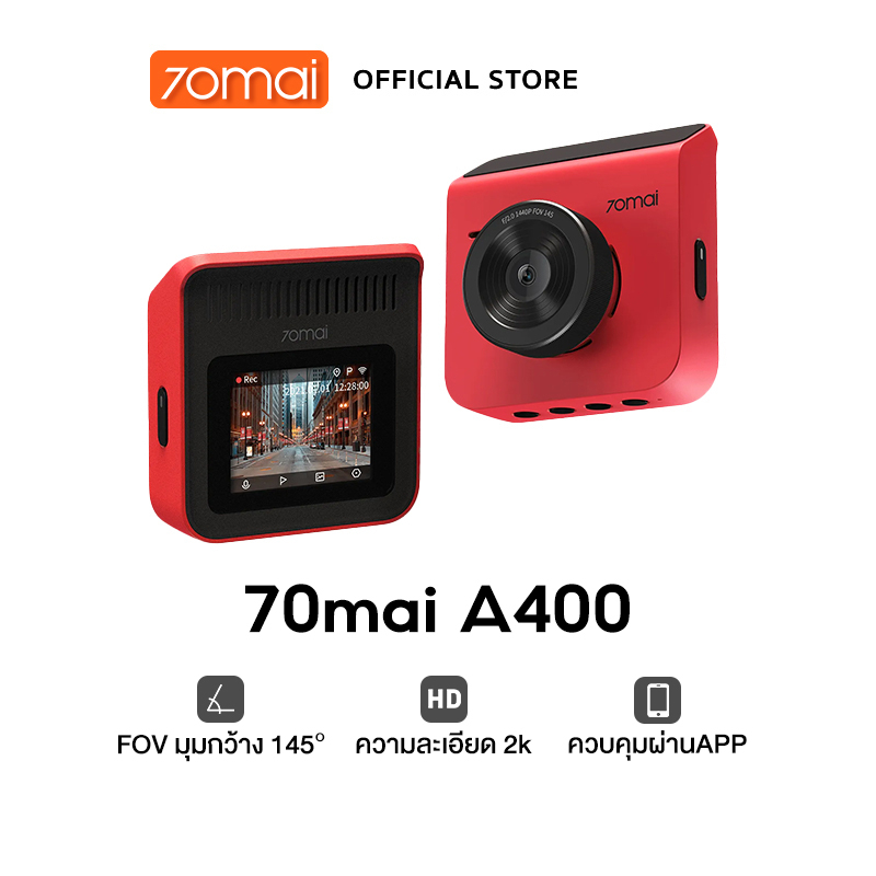 70mai Dash Cam A400 2K WDR 145°FOV Rear Cam Night Vision กล้องติดรถยนต์ ความละเอียด 1440P Quad HD ควบคุมผ่าน APP