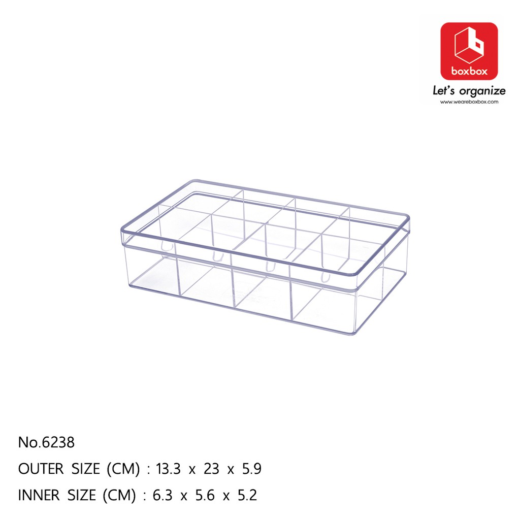 boxbox No.6238 L ขนาด 13.3 x 23 x 5.9 ซม.กล่องพลาสติกใสอเนกประสงค์ แบ่ง 8 ช่อง กล่องเก็บเครื่องประดับ 1162388
