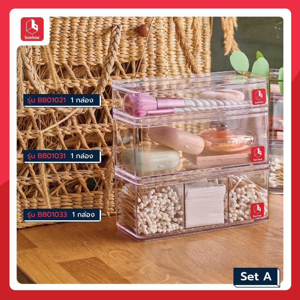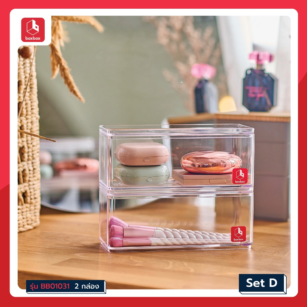 boxbox กล่องพลาสติกใสซ้อนได้ใส่ของ รุ่น Smart จัดเก็บเครื่องสำอาง เครื่องประดับ