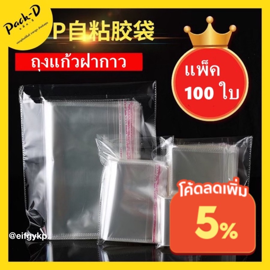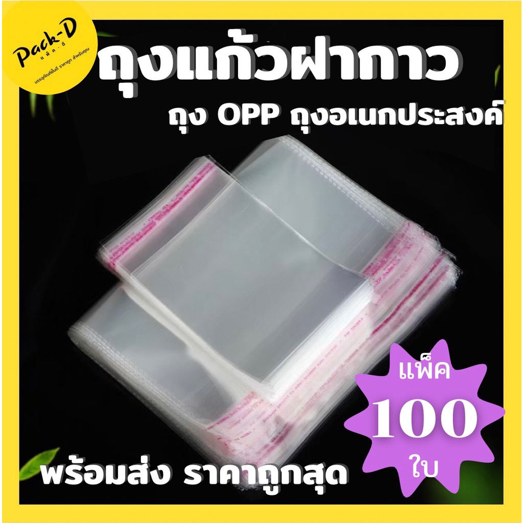[8.8 โค้ด MTCHECK88 ลด 20%] ถุงแก้วฝากาว ซองพลาสติก OPP ใส เทปกาว แบบบาง (แพ็ค 100) ถุงโอพีพี มี 10 ขนาดให้เลือก