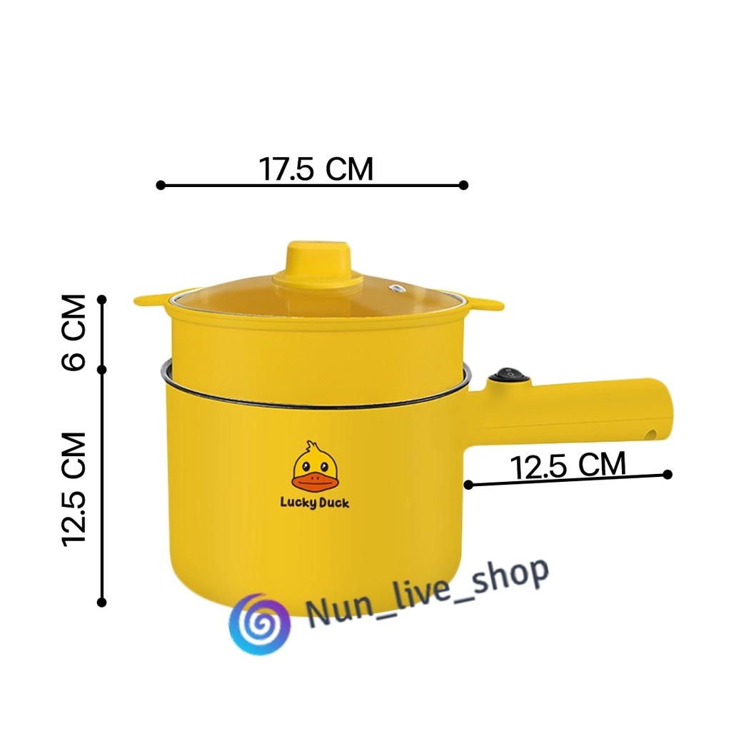 หม้อไฟฟ้า 1.5L กระทะไฟฟ้าเอนกประสงค์ หม้อไฟฟ้าอุ่น ตุ๋น ต้ม นึ่ง หม้อลายเป็ด