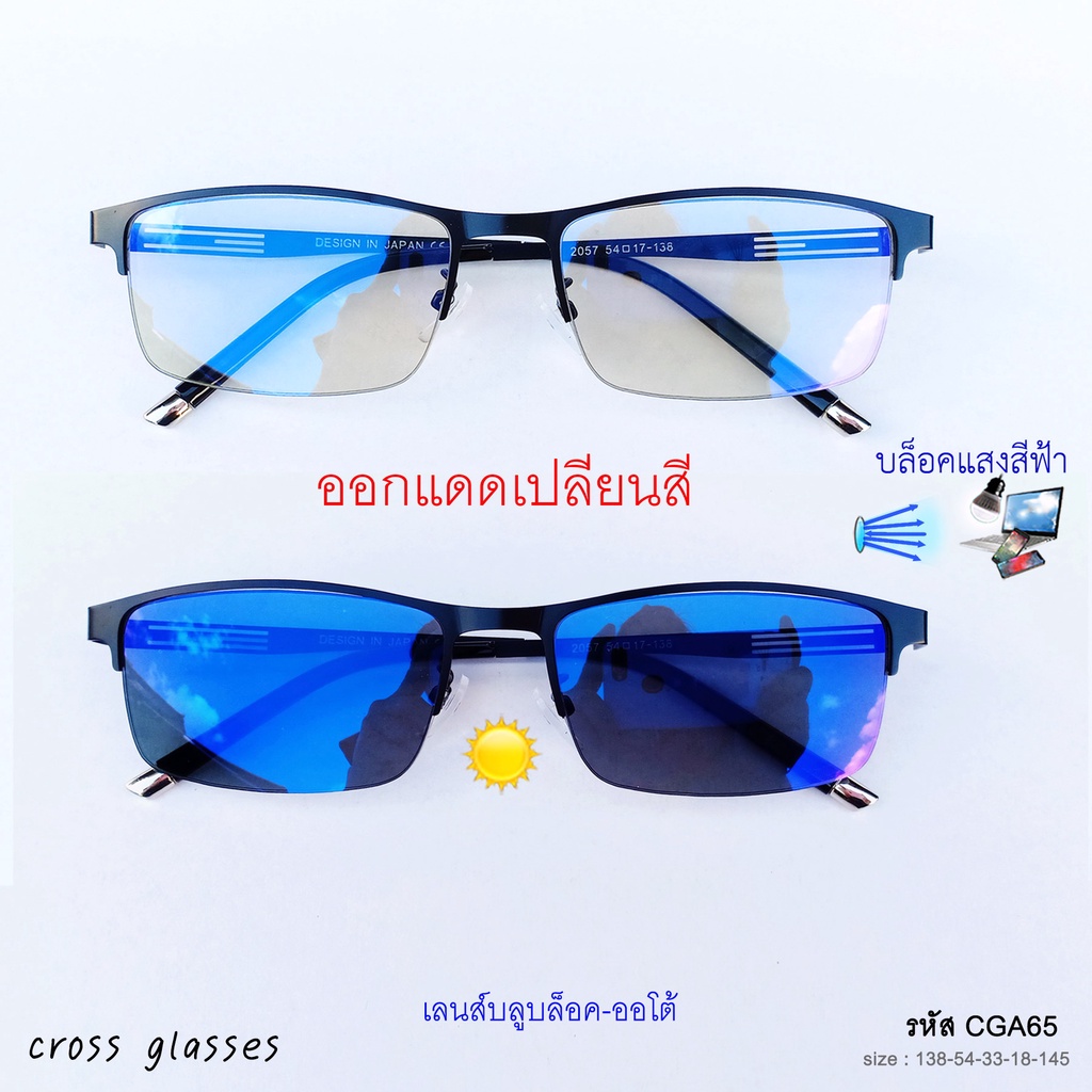 แว่นตาก รองแสงเปลี่ยนสี เลนส์บลูบล็อคออโต้ กรอบครึ่งเฟรม ทรงเหลี่ยม รหัส CGA65