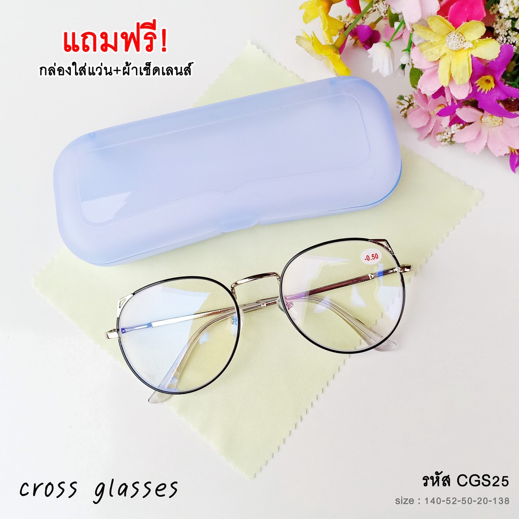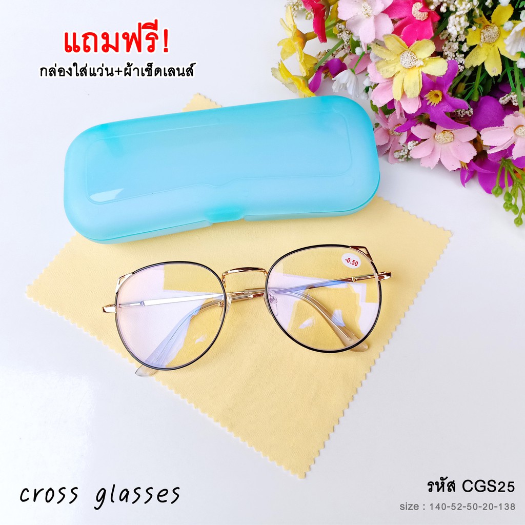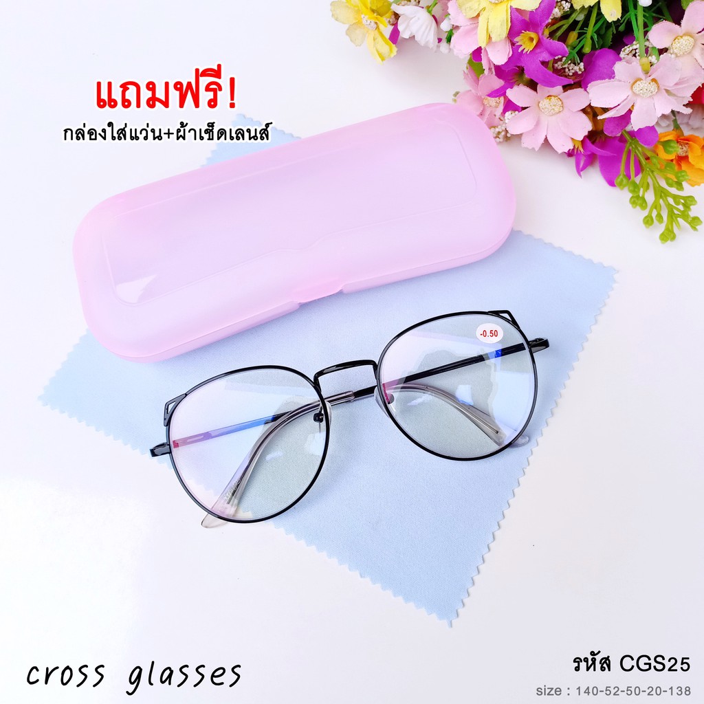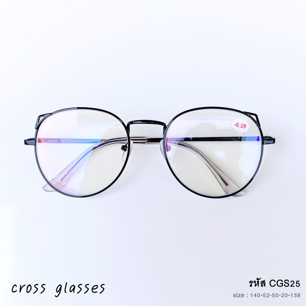 แว่นสายตาสั้น -0.5ถึง-4.0 เลนส์กรองแสง บลูบล็อค ทรง Cat Eye รหัสCGS25