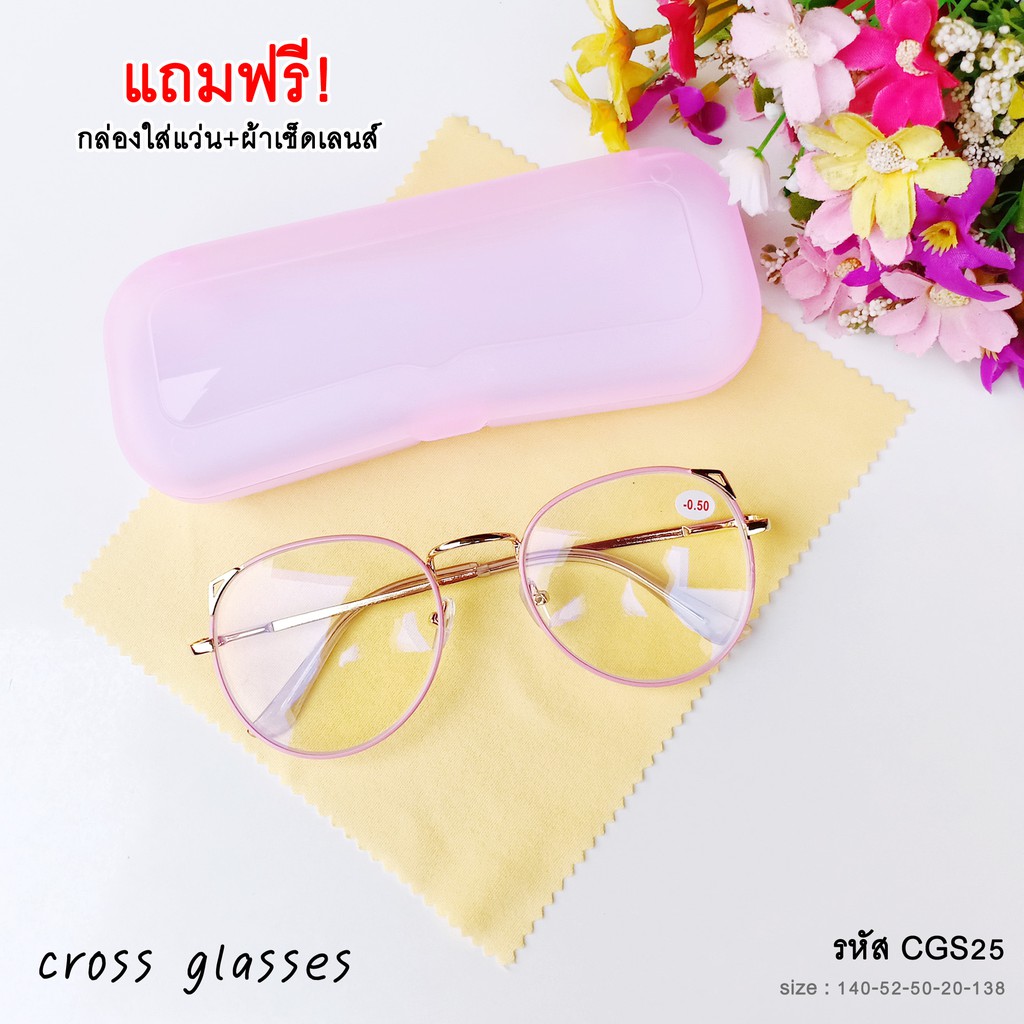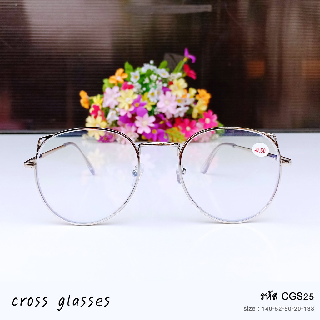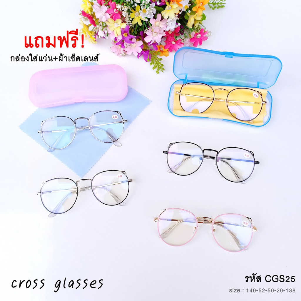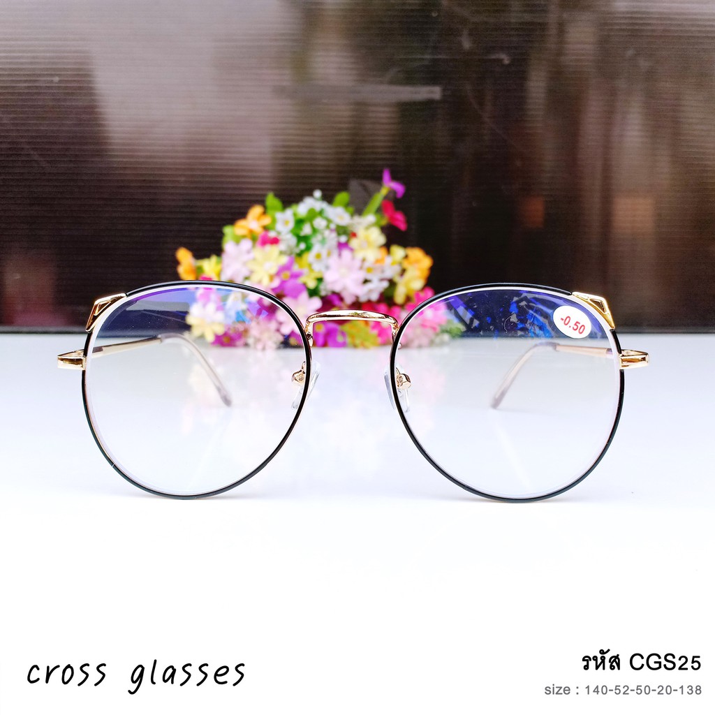 แว่นสายตาสั้น -0.5ถึง-4.0 เลนส์กรองแสง บลูบล็อค ทรง Cat Eye รหัสCGS25